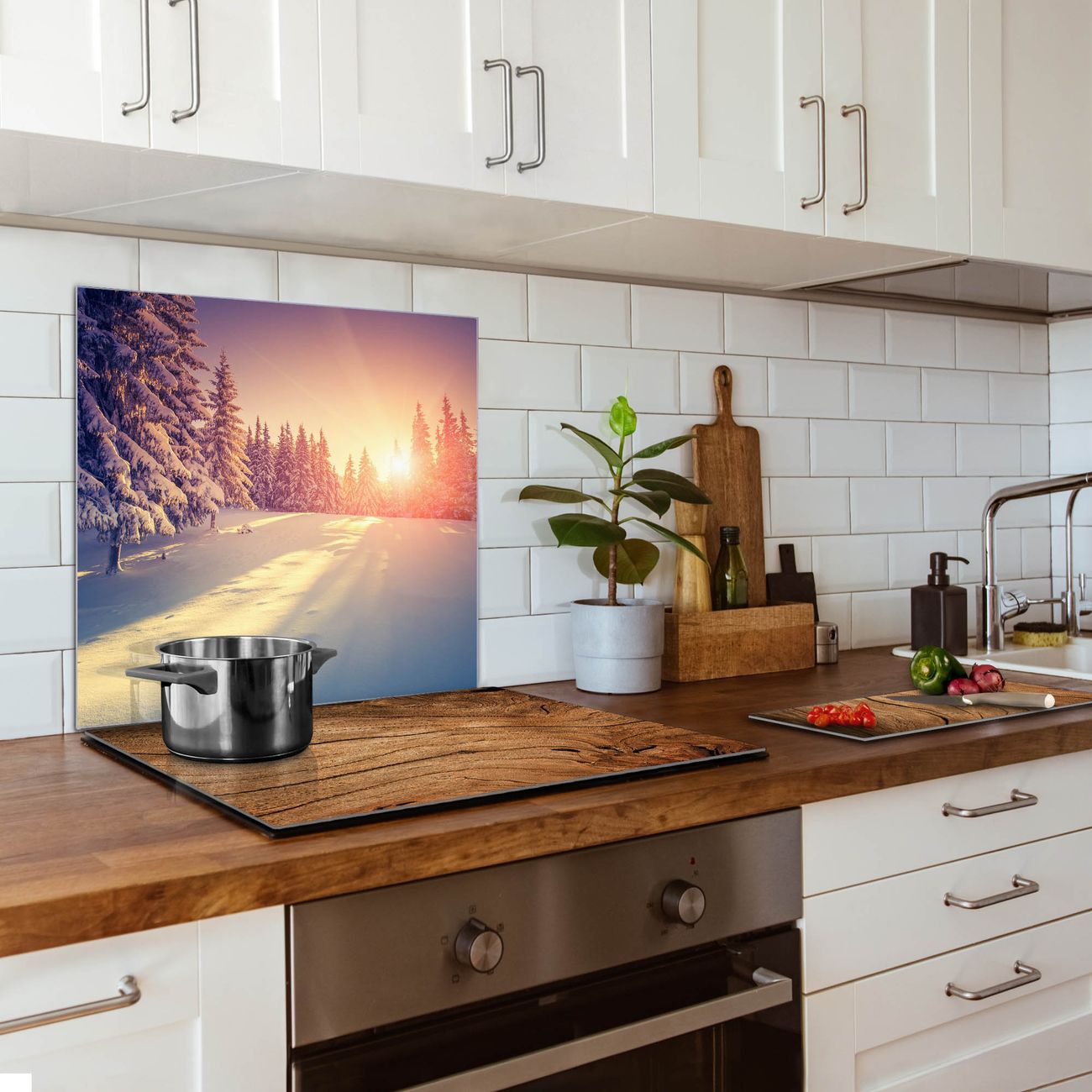 Die banjado Glas Küchenrückwand in verschiedenen Größen mit Motiv Winterabend schützt Ihre Küchenfliesen vor Fettspritzern oder Wasserflecken. Der Spritzschutz ist gleichzeitig magnetisch und hält Ihre Rezepte oder Einkaufslisten. 4 Neodym-Magnete und 1 Kreidestift liegen bereits bei. Leuchtende Motive und hochwertiges Material machen den Spritzschutz zum Designobjekt. Das dekorative Glasbild gibt Ihrer Küche ein individuelles Erscheinungsbild. Abgerundete Kanten und Sicherheitsglas sorgen für einen sicheren Einsatz.