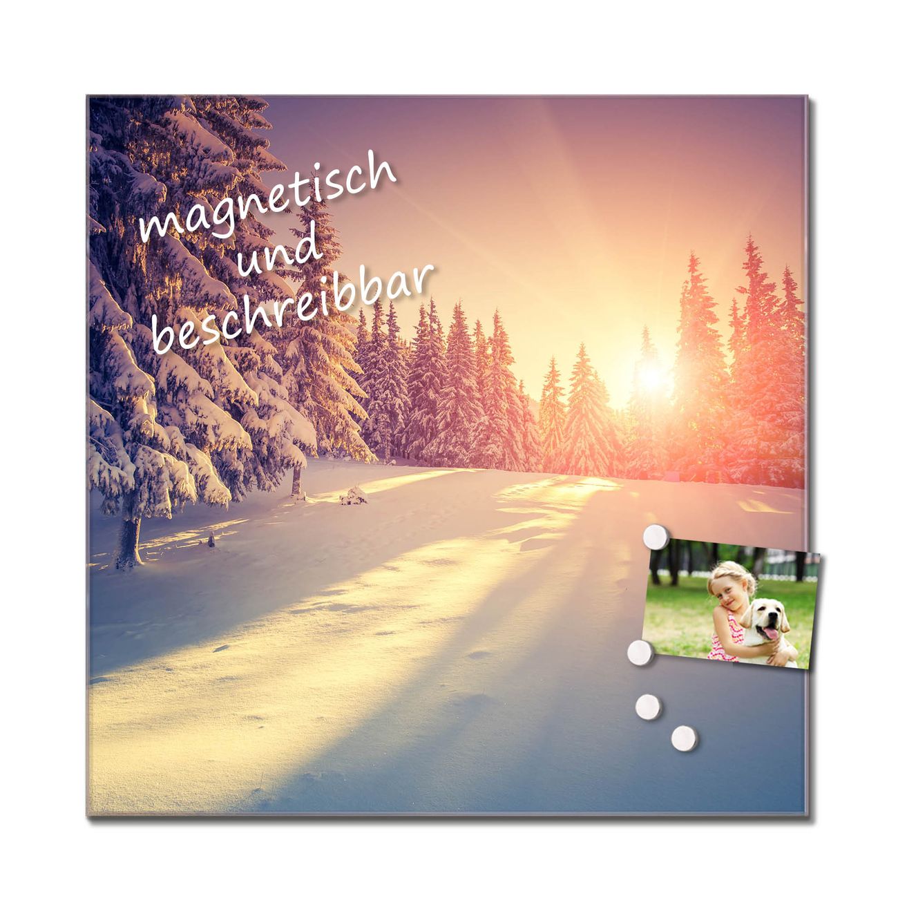 Bitte beachten Sie, dass ausschließlich spezielle Magnete an der Glastafel haften! Wir empfehlen banjado Neodym Magnete, diese sind durch uns auf Wirksamkeit geprüft.
