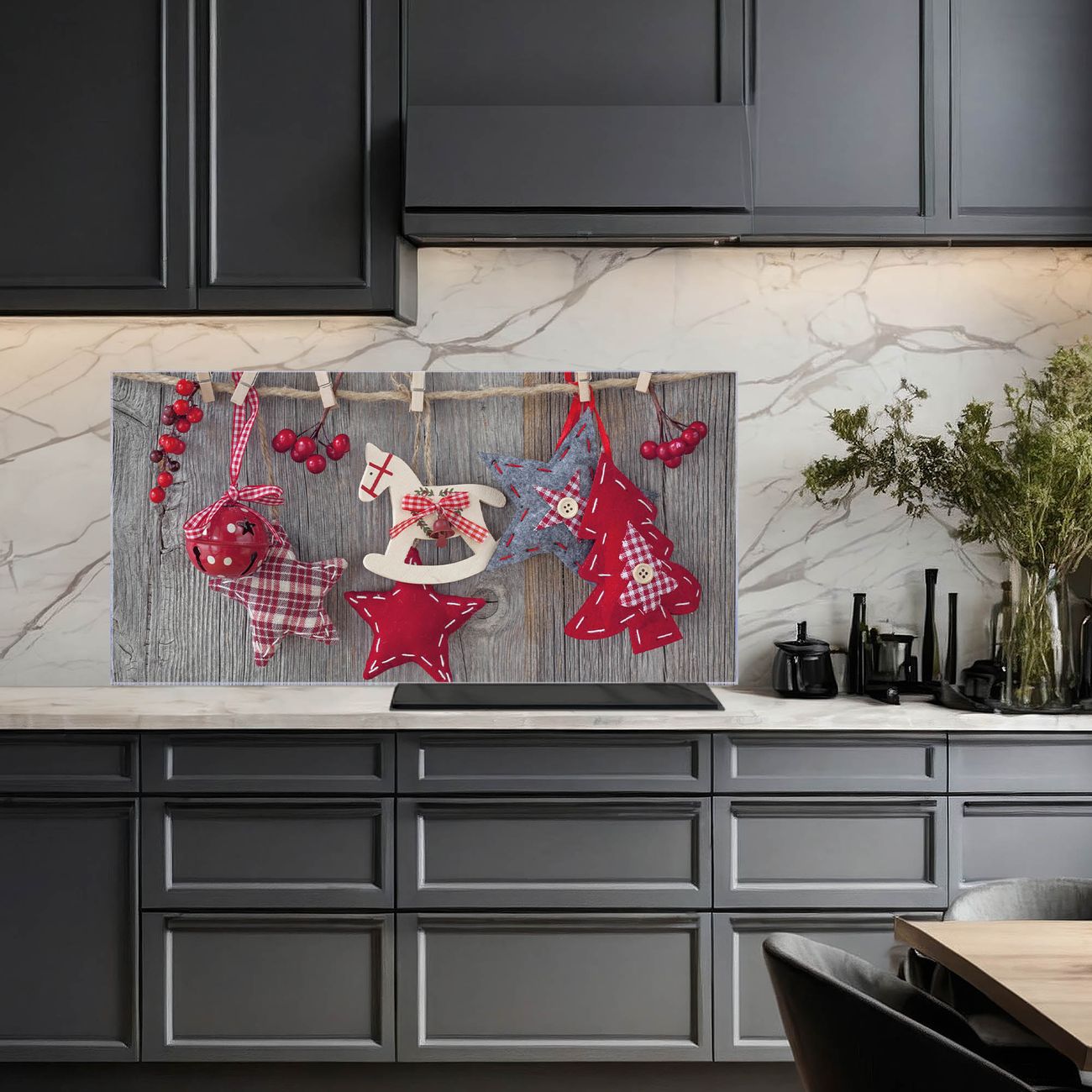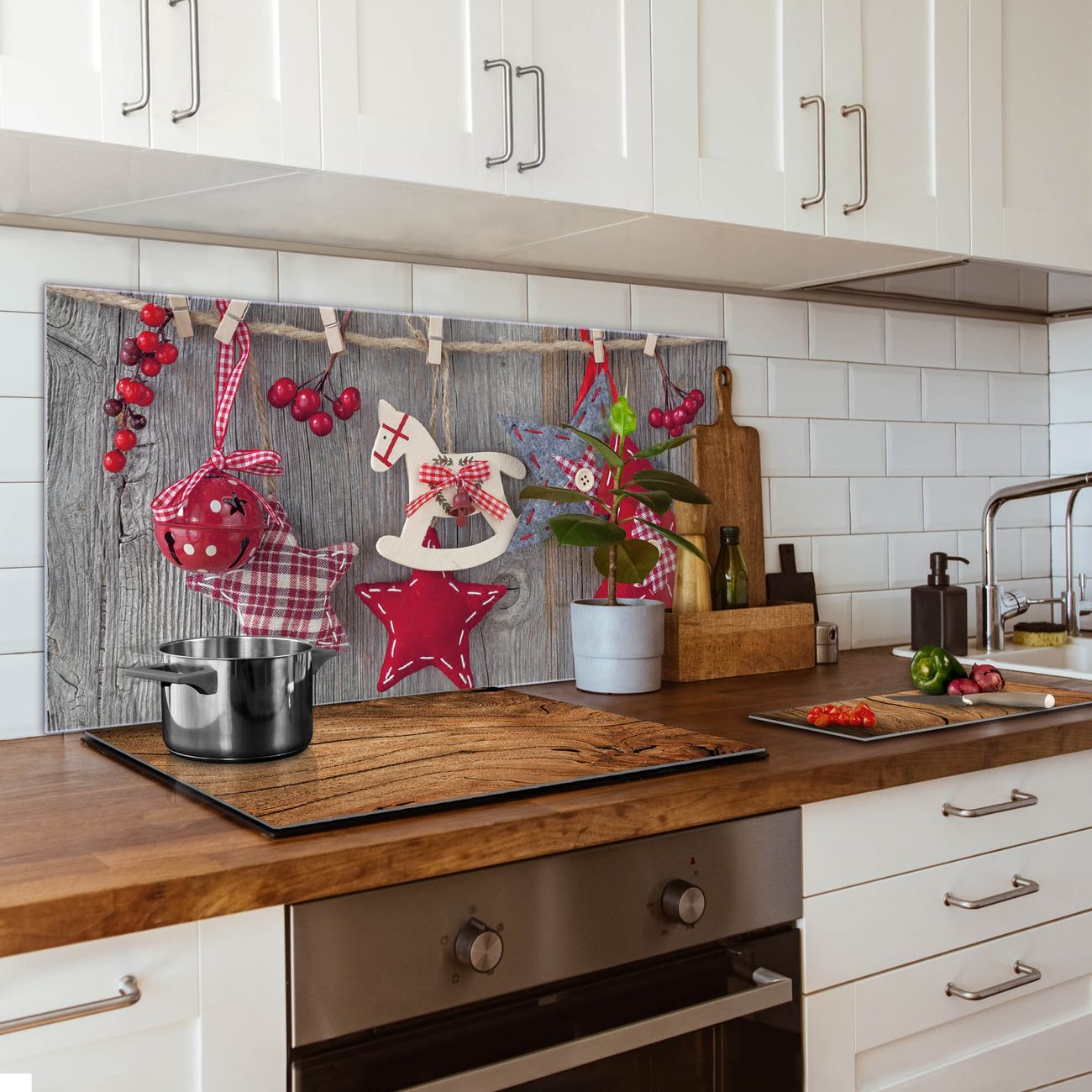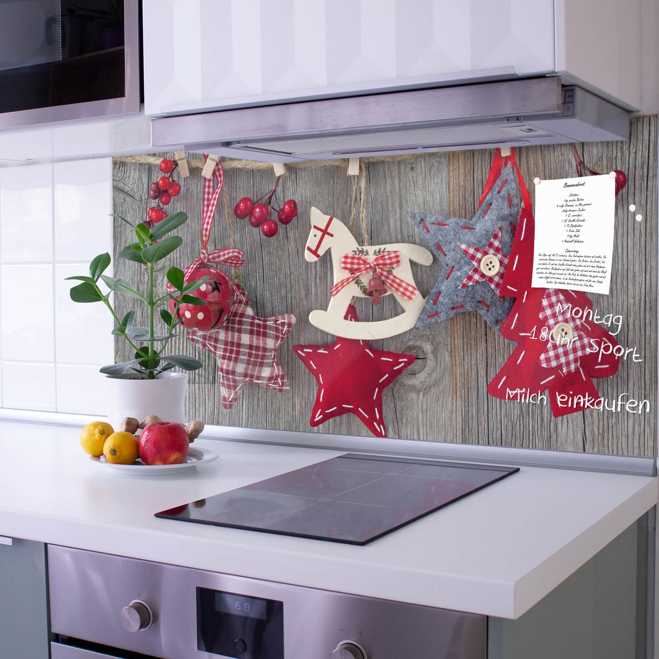 Die banjado Glas Küchenrückwand in verschiedenen Größen mit Motiv Winterdekoration schützt Ihre Küchenfliesen vor Fettspritzern oder Wasserflecken. Der Spritzschutz ist gleichzeitig magnetisch und hält Ihre Rezepte oder Einkaufslisten. 4 Neodym-Magnete und 1 Kreidestift liegen bereits bei. Leuchtende Motive und hochwertiges Material machen den Spritzschutz zum Designobjekt. Das dekorative Glasbild gibt Ihrer Küche ein individuelles Erscheinungsbild. Abgerundete Kanten und Sicherheitsglas sorgen für einen sicheren Einsatz.