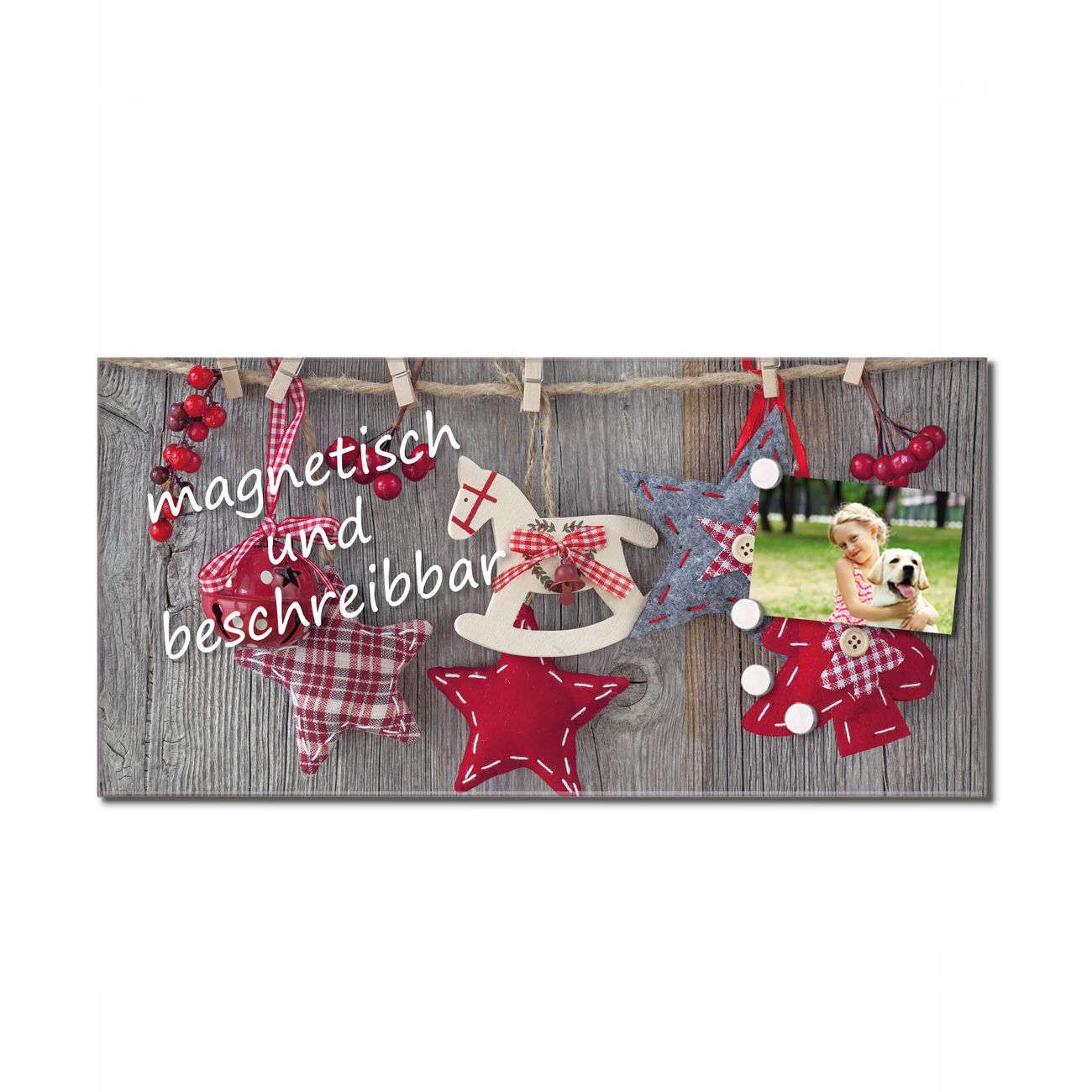 Material  4mm Sicherheitsglas mit Metallrückwand Eigenschaften  beschreibbar, magnetisch, kratzfest Maße  50x100x0,6cm, 7,5 kg schwer Motiv  Nummer 10838 Winterdekoration Zubehör  inklusive 4 Neodym-Magnete