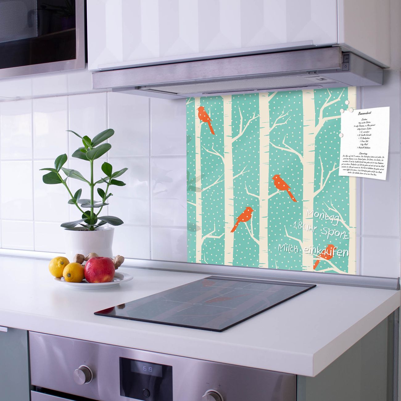 Die banjado Glas Küchenrückwand in verschiedenen Größen mit Motiv Wintervögel schützt Ihre Küchenfliesen vor Fettspritzern oder Wasserflecken. Der Spritzschutz ist gleichzeitig magnetisch und hält Ihre Rezepte oder Einkaufslisten. 4 Neodym-Magnete und 1 Kreidestift liegen bereits bei. Leuchtende Motive und hochwertiges Material machen den Spritzschutz zum Designobjekt. Das dekorative Glasbild gibt Ihrer Küche ein individuelles Erscheinungsbild. Abgerundete Kanten und Sicherheitsglas sorgen für einen sicheren Einsatz.