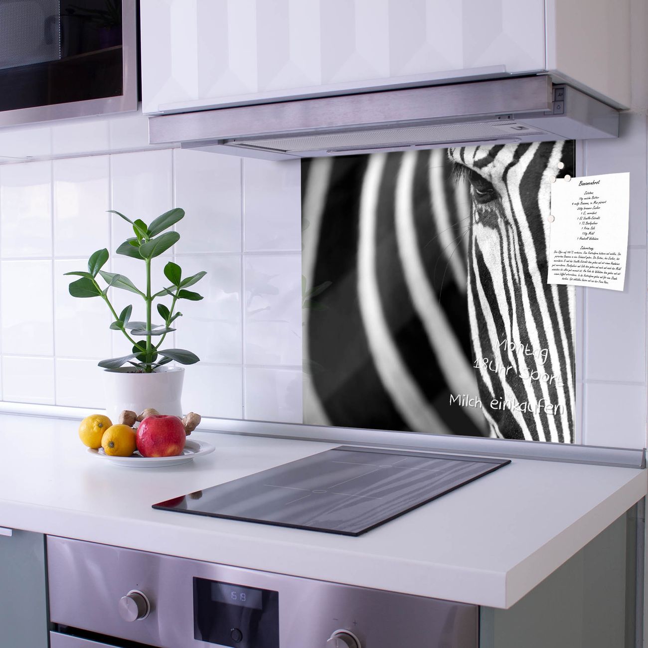 Die banjado Glas Küchenrückwand in verschiedenen Größen mit Motiv Zebra En Face schützt Ihre Küchenfliesen vor Fettspritzern oder Wasserflecken. Der Spritzschutz ist gleichzeitig magnetisch und hält Ihre Rezepte oder Einkaufslisten. 4 Neodym-Magnete und 1 Kreidestift liegen bereits bei. Leuchtende Motive und hochwertiges Material machen den Spritzschutz zum Designobjekt. Das dekorative Glasbild gibt Ihrer Küche ein individuelles Erscheinungsbild. Abgerundete Kanten und Sicherheitsglas sorgen für einen sicheren Einsatz.