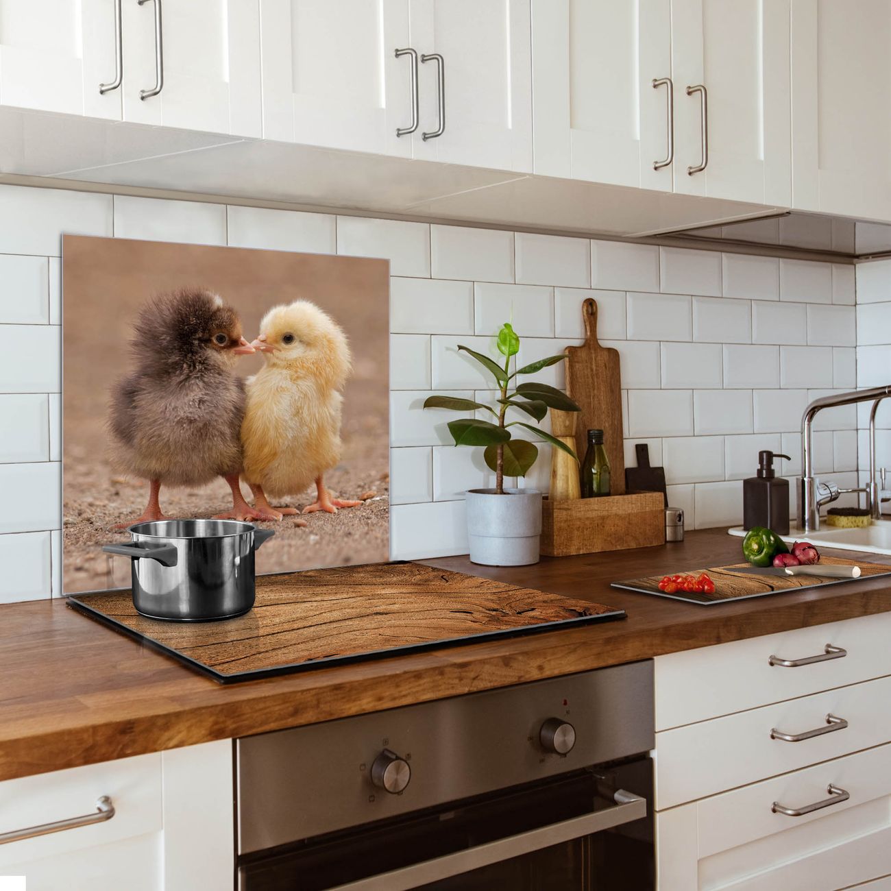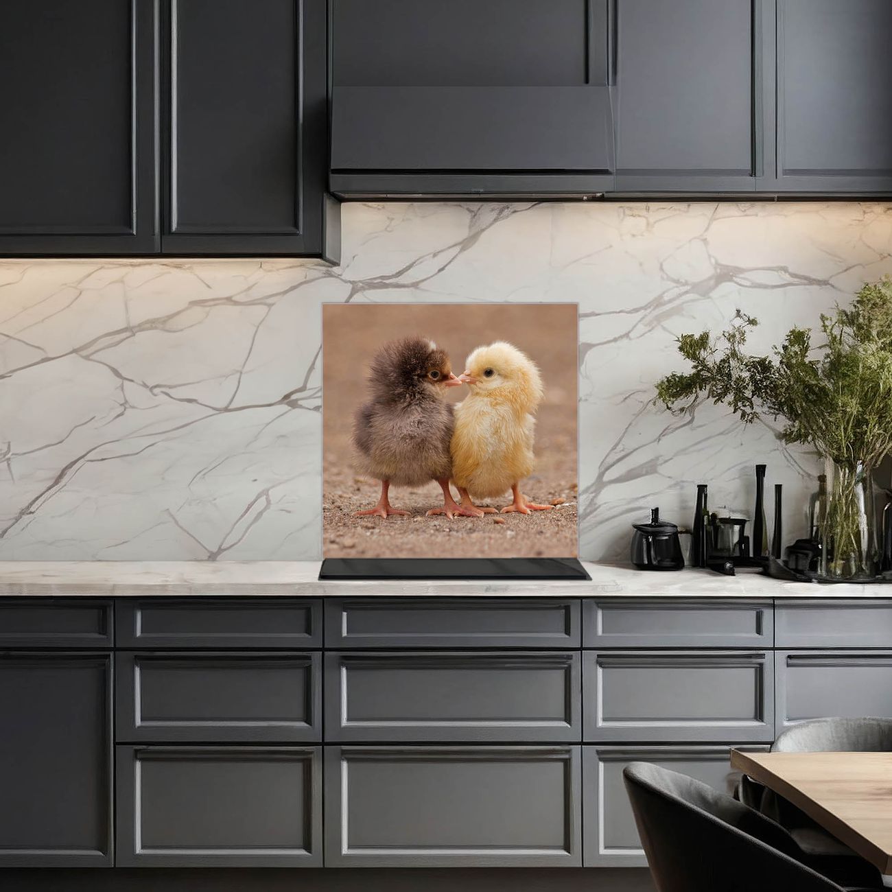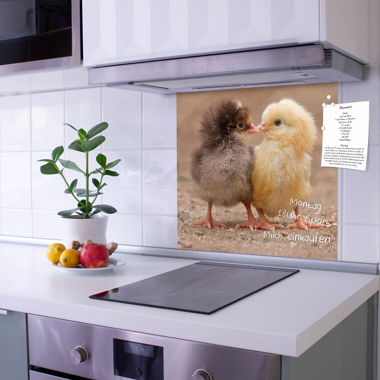 Die banjado Glas Küchenrückwand in verschiedenen Größen mit Motiv Zwei Küken schützt Ihre Küchenfliesen vor Fettspritzern oder Wasserflecken. Der Spritzschutz ist gleichzeitig magnetisch und hält Ihre Rezepte oder Einkaufslisten. 4 Neodym-Magnete und 1 Kreidestift liegen bereits bei. Leuchtende Motive und hochwertiges Material machen den Spritzschutz zum Designobjekt. Das dekorative Glasbild gibt Ihrer Küche ein individuelles Erscheinungsbild. Abgerundete Kanten und Sicherheitsglas sorgen für einen sicheren Einsatz.