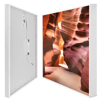 Mit der banjado smarten LED Wandleuchte mit Motiv Antelope Canyon schaffen Sie in Ihren Räumen eine besondere Atmosphäre. Abends spendet die Wandlampe Licht und tagsüber haben Sie ein stimmungsvolles Wandbild. Die Leuchte besteht aus einem zeitlosen weißen Rahmen, in den das smarte WLAN LED Paneel sowie das Bild eingefasst wird. Die Montage ist denkbar einfach, Sie erhalten eine detaillierte Aufbauanleitung sowie Montagematerial. Eine angenehme Lichtquelle erhöht nachweislich das Wohlbefinden. Das Motiv der Leuchte lässt sich leicht wechseln, so können Sie Ihre Wohnräume individuell gestalten. Die Montage ist an der Wand oder an der Decke möglich.