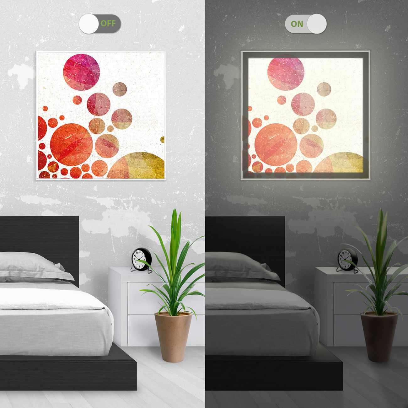 Im eingeschalteten Zustand wirft das Bild einen Schatten wie in der ersten Ansicht zu sehen.