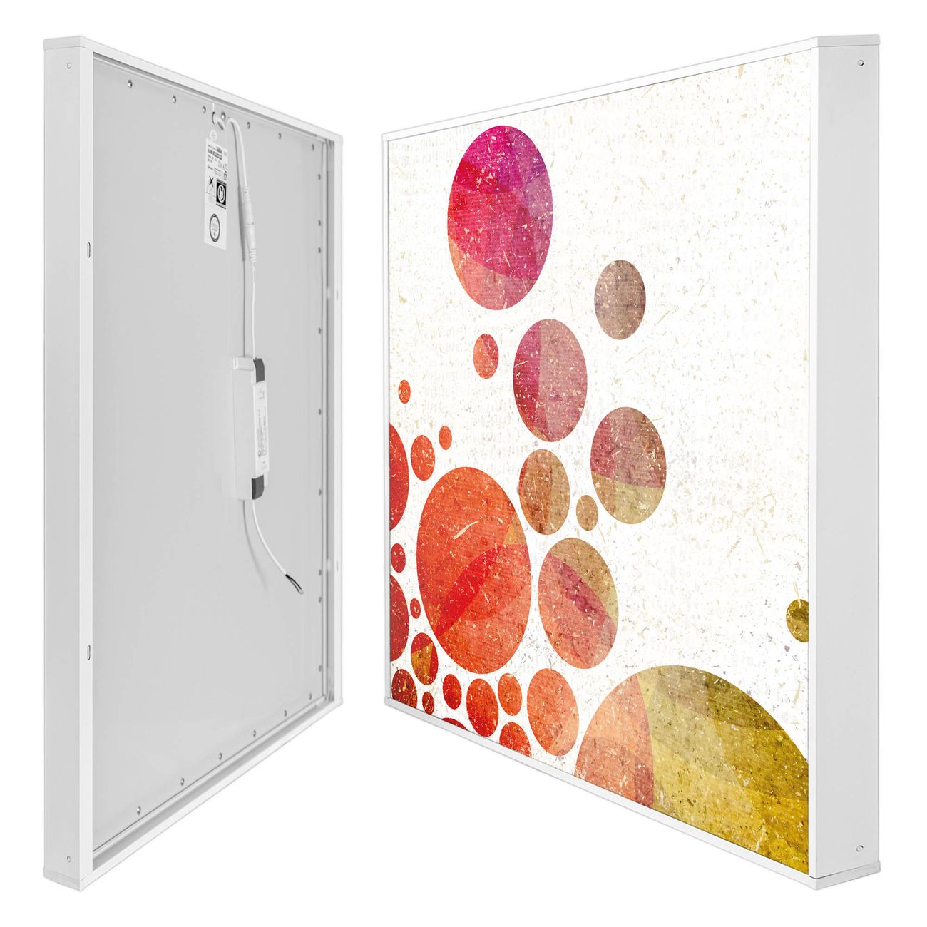 banjado LED Wandleuchte Sie erhalten hier eine stimmungsvolle Lichtquelle bestehend aus dem Set: Smart LED Panel mit Trafo, Motivscheibe (Motiv: Kreise) und Rahmen. Der Aufbau ist denkbar einfach, Sie erhalten eine detaillierte Aufbauanleitung. Die komplette Leuchte kann sowohl an der Wand angeschlossen werden als auch als Deckenleuchte. Die Gesamtgröße der Lampe ist 62,5 x 62,5 x 4,5cm (HxBxT). Das Set besteht aus: LED Panel mit Trafo, Rahmen und Motivbild zum Selbstaufbau.