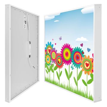 banjado LED Wandleuchte Sie erhalten hier eine stimmungsvolle Lichtquelle bestehend aus dem Set: Smart LED Panel mit Trafo, Motivscheibe (Motiv: Bunte Blumen) und Rahmen. Der Aufbau ist denkbar einfach, Sie erhalten eine detaillierte Aufbauanleitung. Die komplette Leuchte kann sowohl an der Wand angeschlossen werden als auch als Deckenleuchte. Die Gesamtgröße der Lampe ist 62,5 x 62,5 x 4,5cm (HxBxT). Das Set besteht aus: LED Panel mit Trafo, Rahmen und Motivbild zum Selbstaufbau.