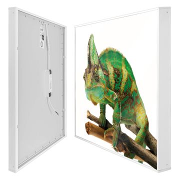 Mit der banjado smarten LED Wandleuchte mit Motiv Chamäleon schaffen Sie in Ihren Räumen eine besondere Atmosphäre. Abends spendet die Wandlampe Licht und tagsüber haben Sie ein stimmungsvolles Wandbild. Die Leuchte besteht aus einem zeitlosen weißen Rahmen, in den das smarte WLAN LED Paneel sowie das Bild eingefasst wird. Die Montage ist denkbar einfach, Sie erhalten eine detaillierte Aufbauanleitung sowie Montagematerial. Eine angenehme Lichtquelle erhöht nachweislich das Wohlbefinden. Das Motiv der Leuchte lässt sich leicht wechseln, so können Sie Ihre Wohnräume individuell gestalten. Die Montage ist an der Wand oder an der Decke möglich.