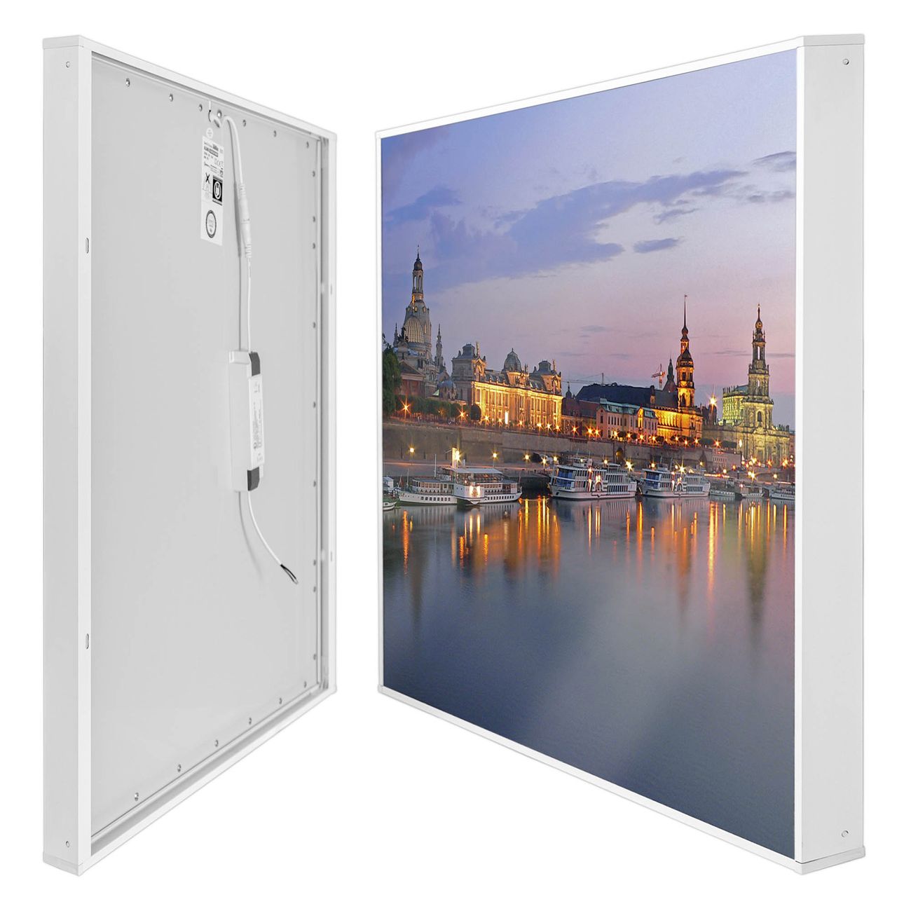 banjado LED Wandleuchte Sie erhalten hier eine stimmungsvolle Lichtquelle bestehend aus dem Set: Smart LED Panel mit Trafo, Motivscheibe (Motiv: Dresden) und Rahmen. Der Aufbau ist denkbar einfach, Sie erhalten eine detaillierte Aufbauanleitung. Die komplette Leuchte kann sowohl an der Wand angeschlossen werden als auch als Deckenleuchte. Die Gesamtgröße der Lampe ist 62,5 x 62,5 x 4,5cm (HxBxT). Das Set besteht aus: LED Panel mit Trafo, Rahmen und Motivbild zum Selbstaufbau.