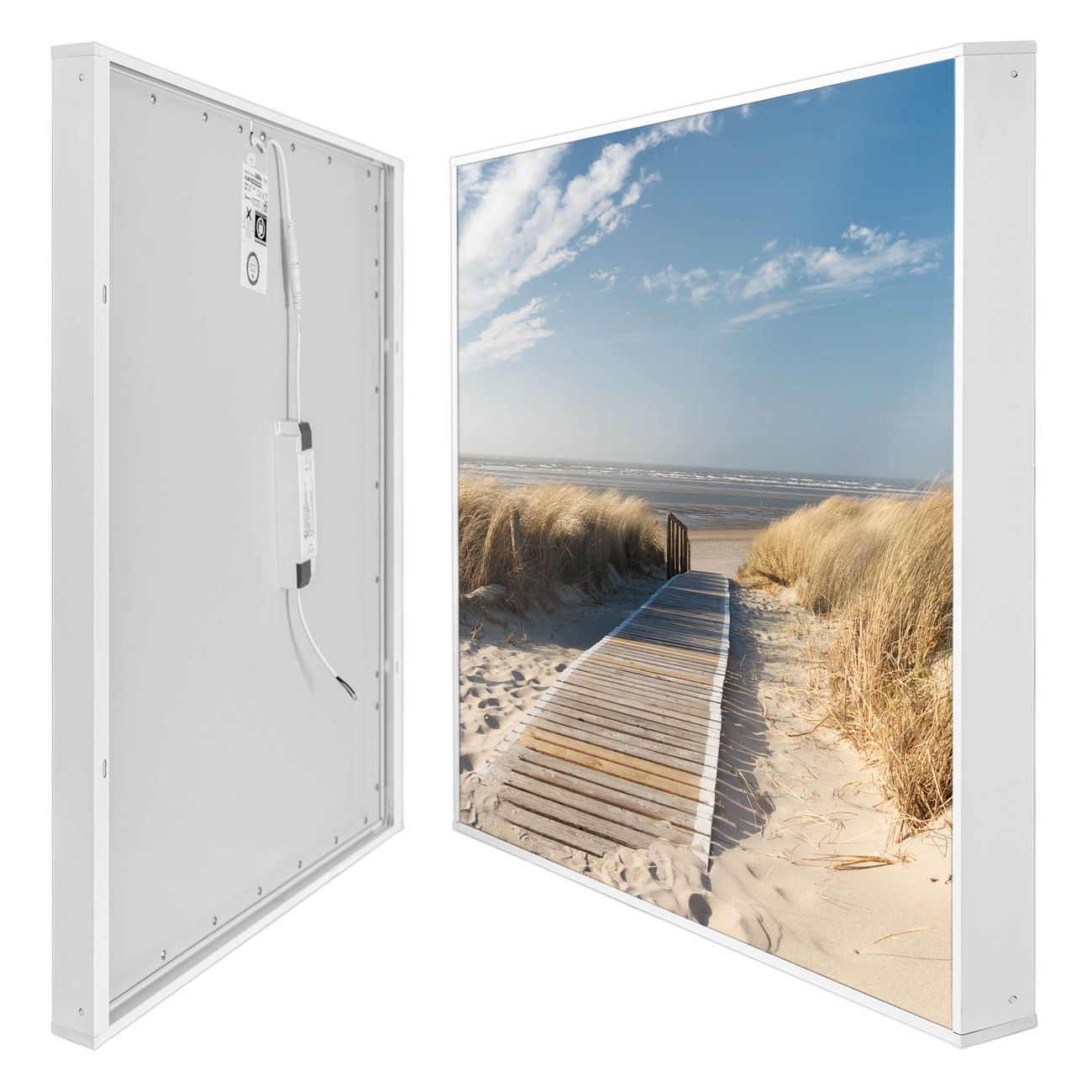 banjado LED Wandleuchte Sie erhalten hier eine stimmungsvolle Lichtquelle bestehend aus dem Set: Smart LED Panel mit Trafo, Motivscheibe (Motiv: Dünen) und Rahmen. Der Aufbau ist denkbar einfach, Sie erhalten eine detaillierte Aufbauanleitung. Die komplette Leuchte kann sowohl an der Wand angeschlossen werden als auch als Deckenleuchte. Die Gesamtgröße der Lampe ist 62,5 x 62,5 x 4,5cm (HxBxT). Das Set besteht aus: LED Panel mit Trafo, Rahmen und Motivbild zum Selbstaufbau.