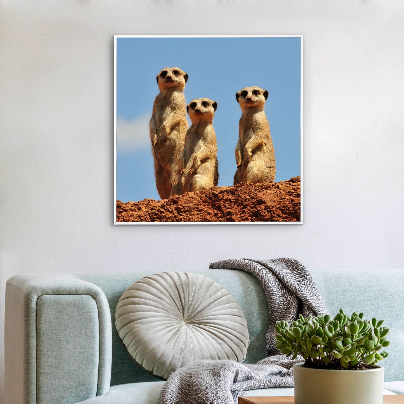 Mit der banjado smarten LED Wandleuchte mit Motiv Erdmännchenfamilie schaffen Sie in Ihren Räumen eine besondere Atmosphäre. Abends spendet die Wandlampe Licht und tagsüber haben Sie ein stimmungsvolles Wandbild. Die Leuchte besteht aus einem zeitlosen weißen Rahmen, in den das smarte WLAN LED Paneel sowie das Bild eingefasst wird. Die Montage ist denkbar einfach, Sie erhalten eine detaillierte Aufbauanleitung sowie Montagematerial. Eine angenehme Lichtquelle erhöht nachweislich das Wohlbefinden. Das Motiv der Leuchte lässt sich leicht wechseln, so können Sie Ihre Wohnräume individuell gestalten. Die Montage ist an der Wand oder an der Decke möglich.