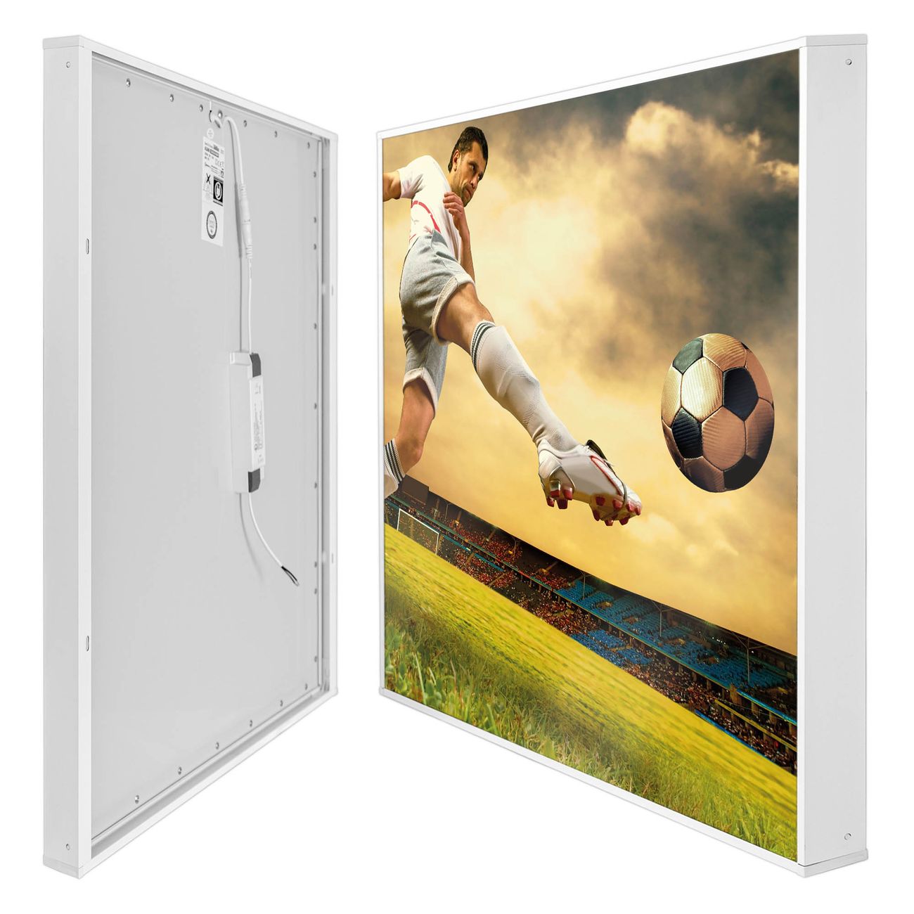 banjado LED Wandleuchte Sie erhalten hier eine stimmungsvolle Lichtquelle bestehend aus dem Set: Smart LED Panel mit Trafo, Motivscheibe (Motiv: Football) und Rahmen. Der Aufbau ist denkbar einfach, Sie erhalten eine detaillierte Aufbauanleitung. Die komplette Leuchte kann sowohl an der Wand angeschlossen werden als auch als Deckenleuchte. Die Gesamtgröße der Lampe ist 62,5 x 62,5 x 4,5cm (HxBxT). Das Set besteht aus: LED Panel mit Trafo, Rahmen und Motivbild zum Selbstaufbau.