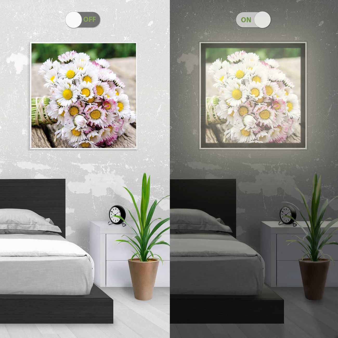 banjado Licht Bild LED Lampe Smart Home Motiv Strauß Gänseblümchen