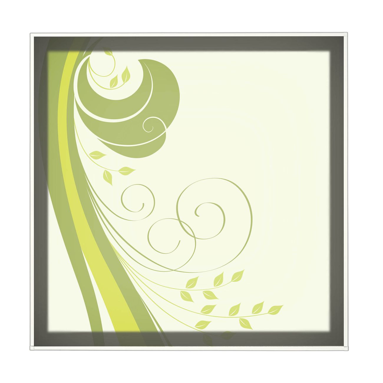 banjado LED Wandleuchte Sie erhalten hier eine stimmungsvolle Lichtquelle bestehend aus dem Set: Smart LED Panel mit Trafo, Motivscheibe (Motiv: Green Swirl) und Rahmen. Der Aufbau ist denkbar einfach, Sie erhalten eine detaillierte Aufbauanleitung. Die komplette Leuchte kann sowohl an der Wand angeschlossen werden als auch als Deckenleuchte. Die Gesamtgröße der Lampe ist 62,5 x 62,5 x 4,5cm (HxBxT). Das Set besteht aus: LED Panel mit Trafo, Rahmen und Motivbild zum Selbstaufbau.