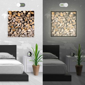banjado Licht Bild LED Lampe Smart Home Motiv Holzstapel