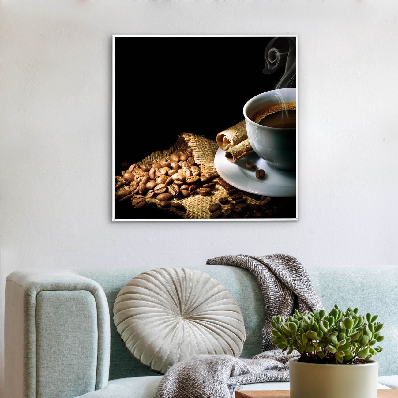 Mit der banjado smarten LED Wandleuchte mit Motiv Hot Coffee schaffen Sie in Ihren Räumen eine besondere Atmosphäre. Abends spendet die Wandlampe Licht und tagsüber haben Sie ein stimmungsvolles Wandbild. Die Leuchte besteht aus einem zeitlosen weißen Rahmen, in den das smarte WLAN LED Paneel sowie das Bild eingefasst wird. Die Montage ist denkbar einfach, Sie erhalten eine detaillierte Aufbauanleitung sowie Montagematerial. Eine angenehme Lichtquelle erhöht nachweislich das Wohlbefinden. Das Motiv der Leuchte lässt sich leicht wechseln, so können Sie Ihre Wohnräume individuell gestalten. Die Montage ist an der Wand oder an der Decke möglich.