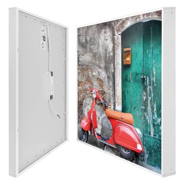 banjado LED Wandleuchte Sie erhalten hier eine stimmungsvolle Lichtquelle bestehend aus dem Set: Smart LED Panel mit Trafo, Motivscheibe (Motiv: Italienischer Roller) und Rahmen. Der Aufbau ist denkbar einfach, Sie erhalten eine detaillierte Aufbauanleitung. Die komplette Leuchte kann sowohl an der Wand angeschlossen werden als auch als Deckenleuchte. Die Gesamtgröße der Lampe ist 62,5 x 62,5 x 4,5cm (HxBxT). Das Set besteht aus: LED Panel mit Trafo, Rahmen und Motivbild zum Selbstaufbau.