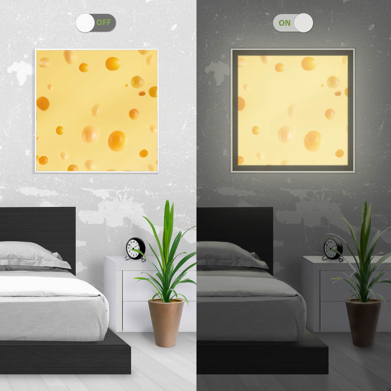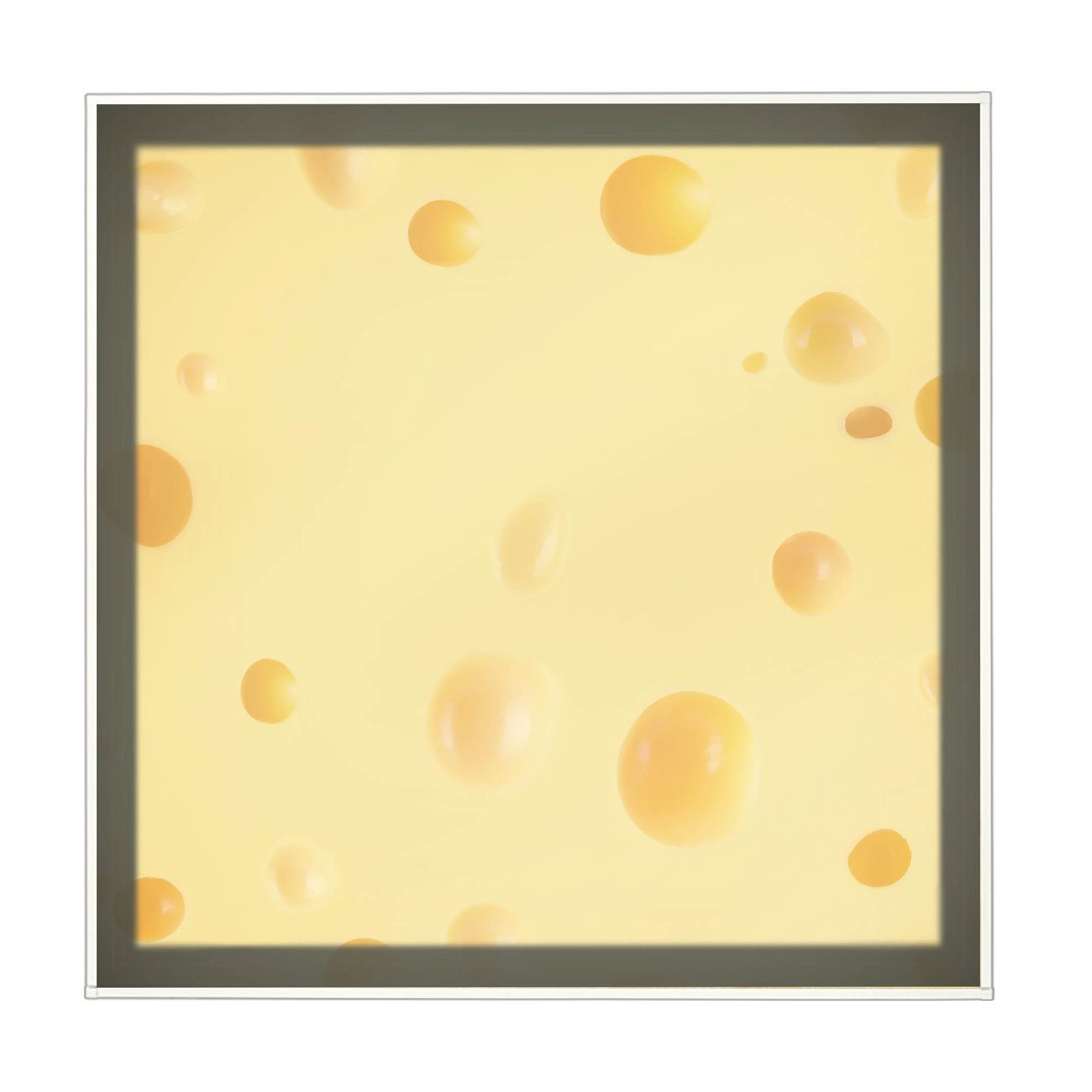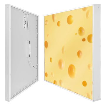 banjado LED Wandleuchte Sie erhalten hier eine stimmungsvolle Lichtquelle bestehend aus dem Set: Smart LED Panel mit Trafo, Motivscheibe (Motiv: Käse) und Rahmen. Der Aufbau ist denkbar einfach, Sie erhalten eine detaillierte Aufbauanleitung. Die komplette Leuchte kann sowohl an der Wand angeschlossen werden als auch als Deckenleuchte. Die Gesamtgröße der Lampe ist 62,5 x 62,5 x 4,5cm (HxBxT). Das Set besteht aus: LED Panel mit Trafo, Rahmen und Motivbild zum Selbstaufbau.