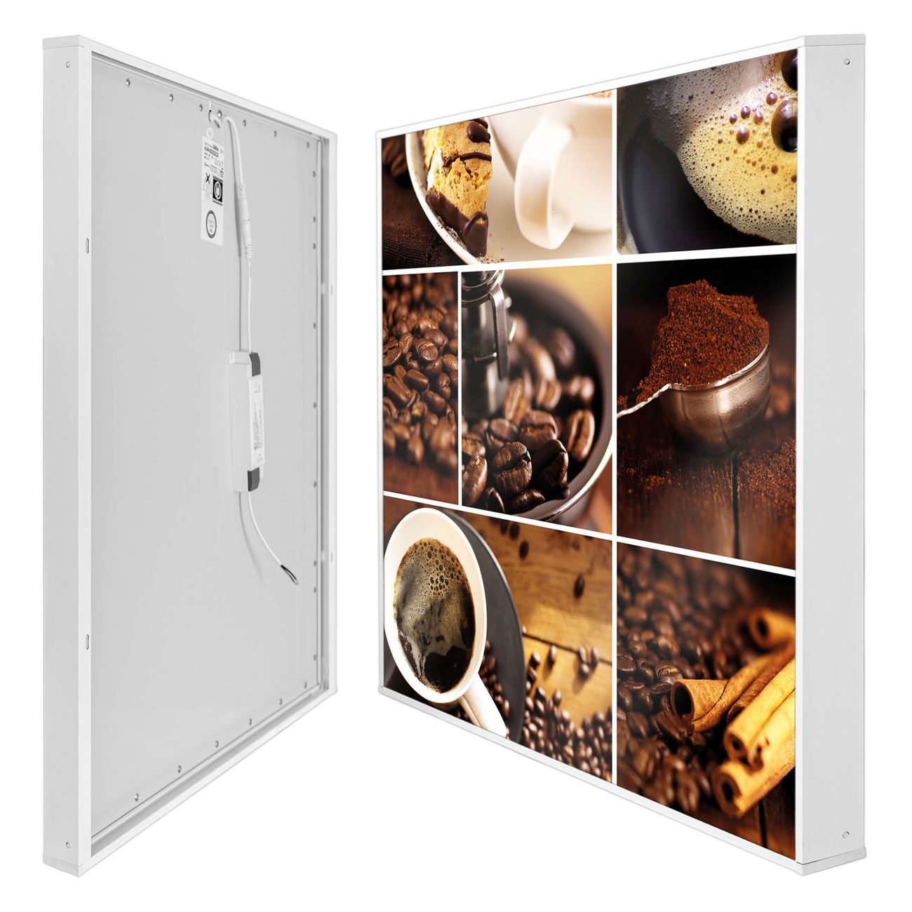 banjado LED Wandleuchte Sie erhalten hier eine stimmungsvolle Lichtquelle bestehend aus dem Set: Smart LED Panel mit Trafo, Motivscheibe (Motiv: Kaffee&Schokolade) und Rahmen. Der Aufbau ist denkbar einfach, Sie erhalten eine detaillierte Aufbauanleitung. Die komplette Leuchte kann sowohl an der Wand angeschlossen werden als auch als Deckenleuchte. Die Gesamtgröße der Lampe ist 62,5 x 62,5 x 4,5cm (HxBxT). Das Set besteht aus: LED Panel mit Trafo, Rahmen und Motivbild zum Selbstaufbau.