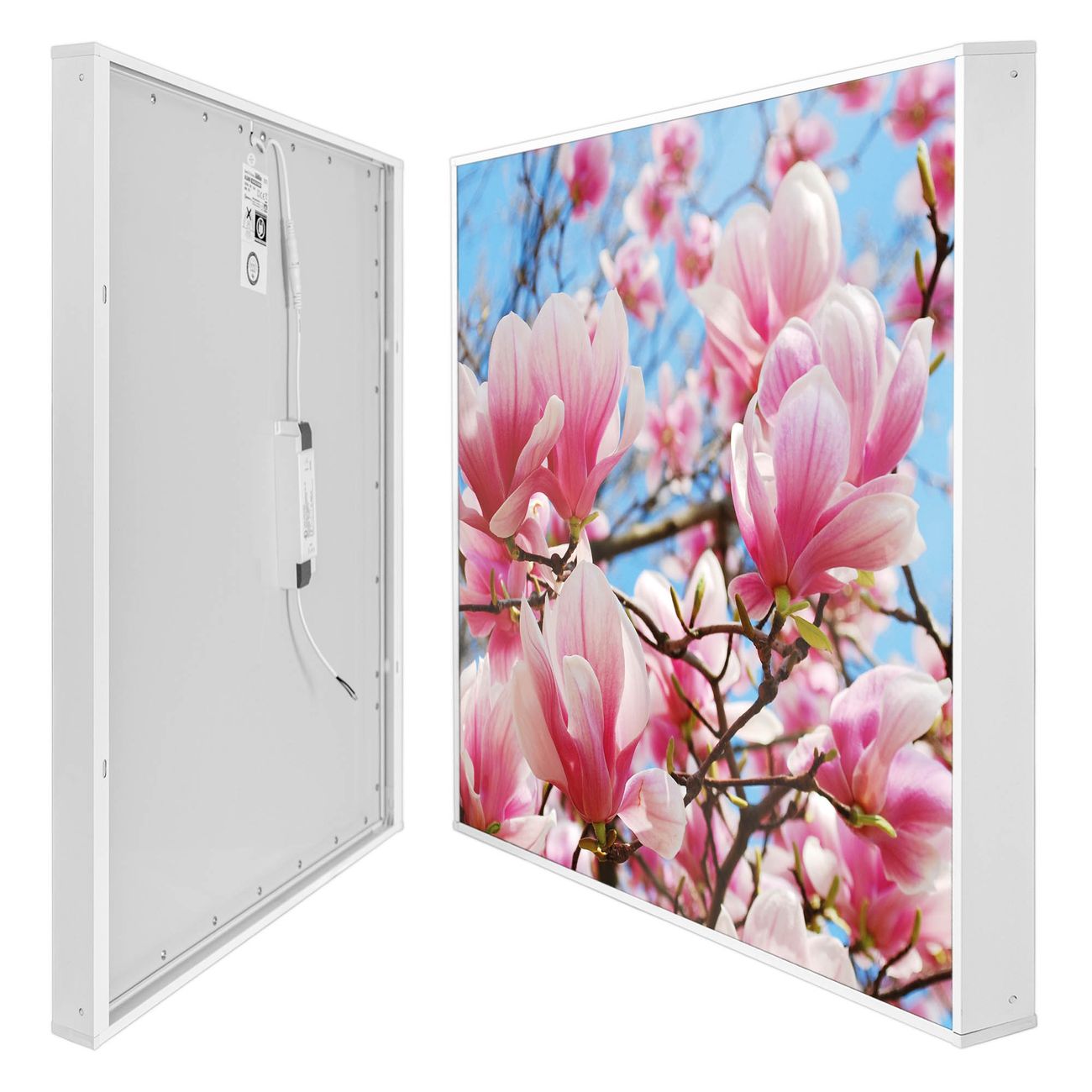 banjado LED Wandleuchte Sie erhalten hier eine stimmungsvolle Lichtquelle bestehend aus dem Set: Smart LED Panel mit Trafo, Motivscheibe (Motiv: Magnolienbaum) und Rahmen. Der Aufbau ist denkbar einfach, Sie erhalten eine detaillierte Aufbauanleitung. Die komplette Leuchte kann sowohl an der Wand angeschlossen werden als auch als Deckenleuchte. Die Gesamtgröße der Lampe ist 62,5 x 62,5 x 4,5cm (HxBxT). Das Set besteht aus: LED Panel mit Trafo, Rahmen und Motivbild zum Selbstaufbau.