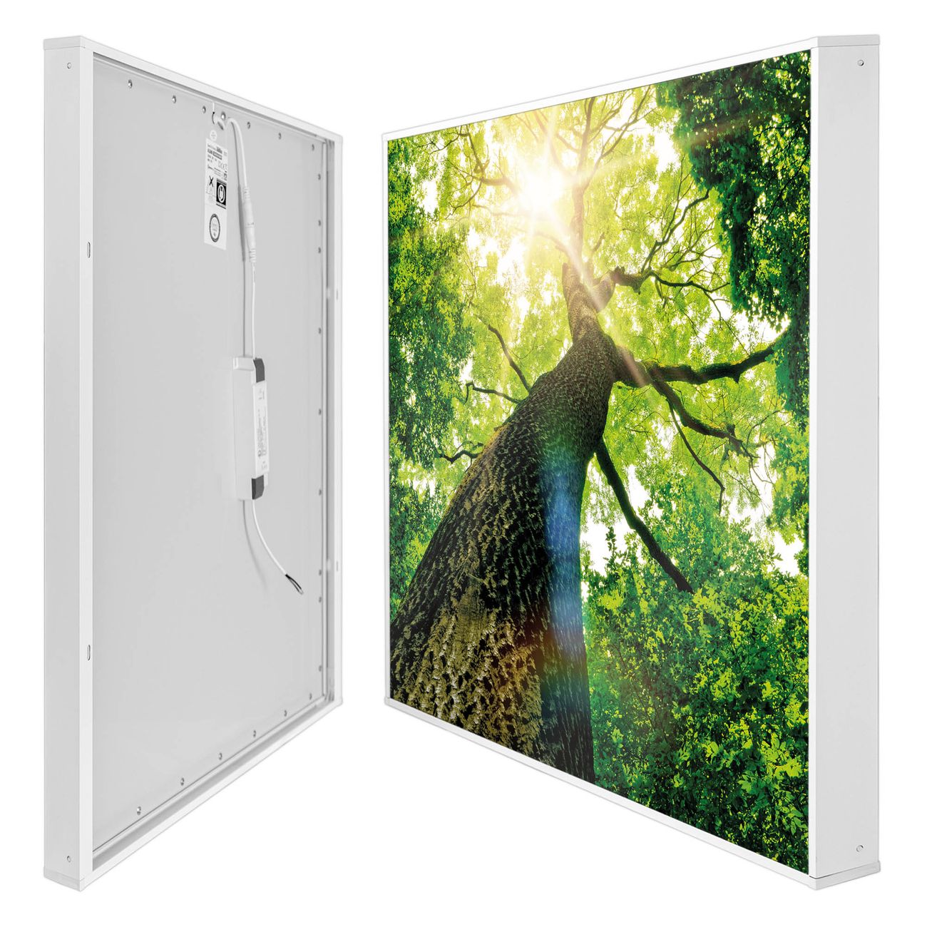 banjado LED Wandleuchte Sie erhalten hier eine stimmungsvolle Lichtquelle bestehend aus dem Set: Smart LED Panel mit Trafo, Motivscheibe (Motiv: Baumkrone) und Rahmen. Der Aufbau ist denkbar einfach, Sie erhalten eine detaillierte Aufbauanleitung. Die komplette Leuchte kann sowohl an der Wand angeschlossen werden als auch als Deckenleuchte. Die Gesamtgröße der Lampe ist 62,5 x 62,5 x 4,5cm (HxBxT). Das Set besteht aus: LED Panel mit Trafo, Rahmen und Motivbild zum Selbstaufbau.