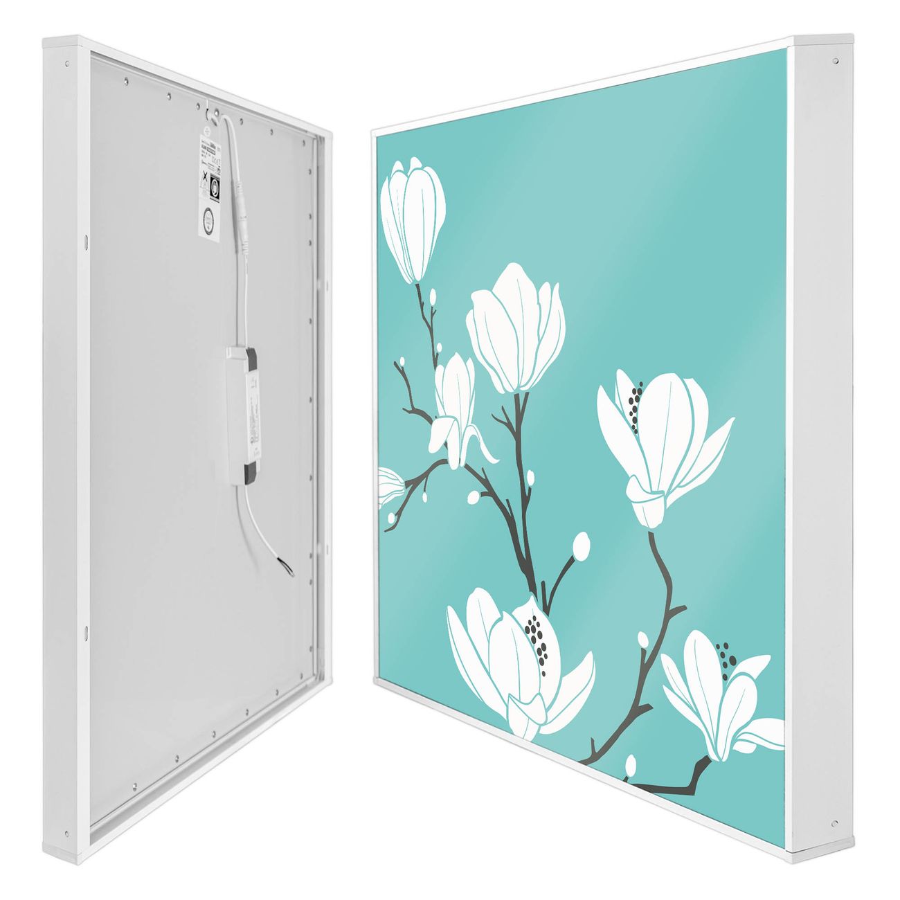 banjado LED Wandleuchte Sie erhalten hier eine stimmungsvolle Lichtquelle bestehend aus dem Set: Smart LED Panel mit Trafo, Motivscheibe (Motiv: Magnolien) und Rahmen. Der Aufbau ist denkbar einfach, Sie erhalten eine detaillierte Aufbauanleitung. Die komplette Leuchte kann sowohl an der Wand angeschlossen werden als auch als Deckenleuchte. Die Gesamtgröße der Lampe ist 62,5 x 62,5 x 4,5cm (HxBxT). Das Set besteht aus: LED Panel mit Trafo, Rahmen und Motivbild zum Selbstaufbau.