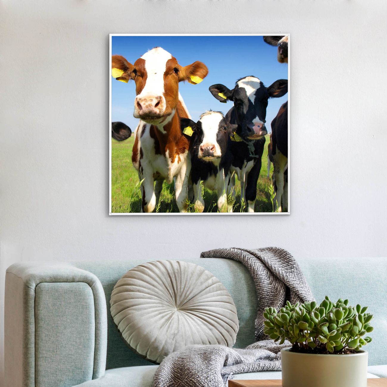 Mit der banjado smarten LED Wandleuchte mit Motiv Kühe schaffen Sie in Ihren Räumen eine besondere Atmosphäre. Abends spendet die Wandlampe Licht und tagsüber haben Sie ein stimmungsvolles Wandbild. Die Leuchte besteht aus einem zeitlosen weißen Rahmen, in den das smarte WLAN LED Paneel sowie das Bild eingefasst wird. Die Montage ist denkbar einfach, Sie erhalten eine detaillierte Aufbauanleitung sowie Montagematerial. Eine angenehme Lichtquelle erhöht nachweislich das Wohlbefinden. Das Motiv der Leuchte lässt sich leicht wechseln, so können Sie Ihre Wohnräume individuell gestalten. Die Montage ist an der Wand oder an der Decke möglich.