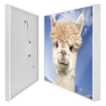 banjado LED Wandleuchte Sie erhalten hier eine stimmungsvolle Lichtquelle bestehend aus dem Set: Smart LED Panel mit Trafo, Motivscheibe (Motiv: Lama) und Rahmen. Der Aufbau ist denkbar einfach, Sie erhalten eine detaillierte Aufbauanleitung. Die komplette Leuchte kann sowohl an der Wand angeschlossen werden als auch als Deckenleuchte. Die Gesamtgröße der Lampe ist 62,5 x 62,5 x 4,5cm (HxBxT). Das Set besteht aus: LED Panel mit Trafo, Rahmen und Motivbild zum Selbstaufbau.