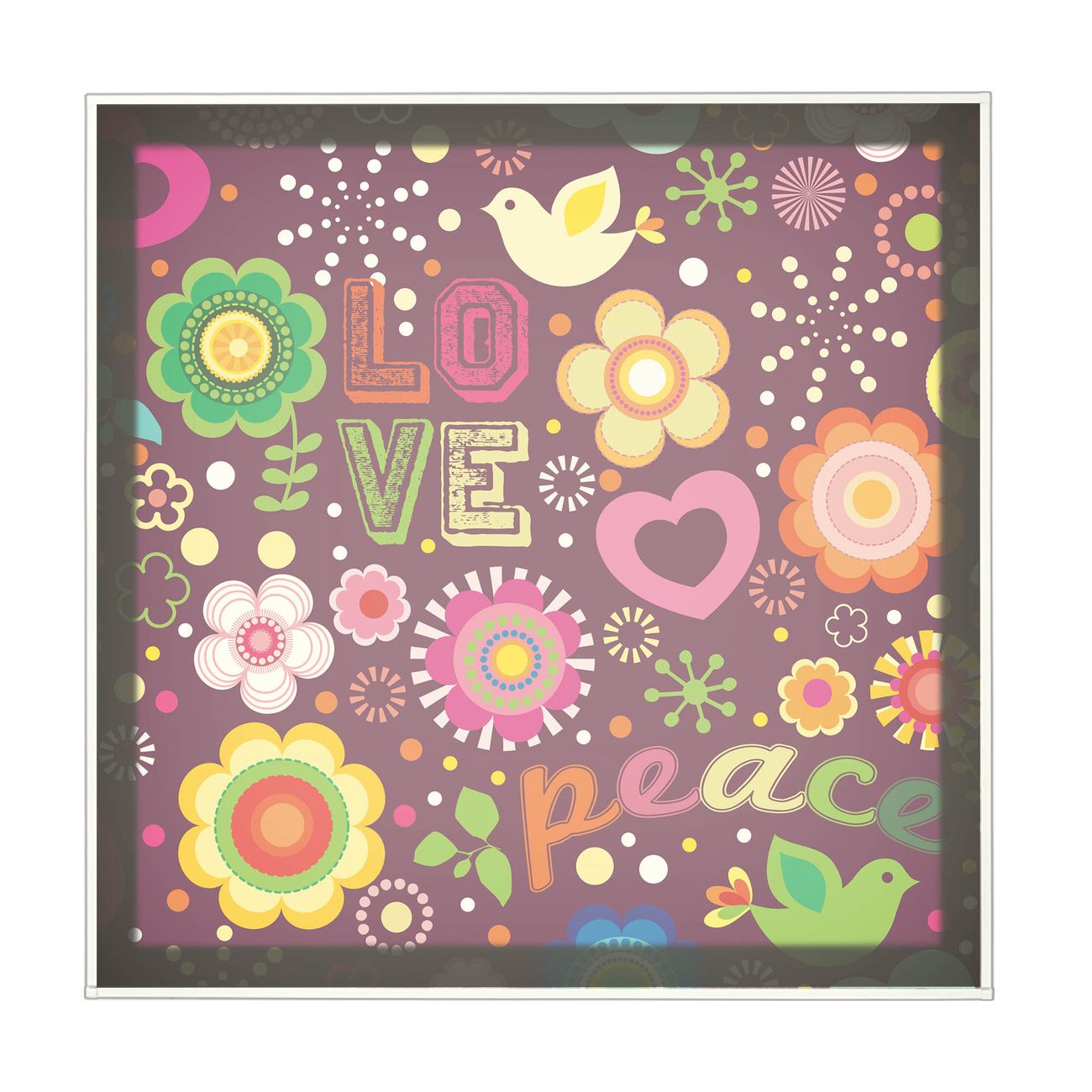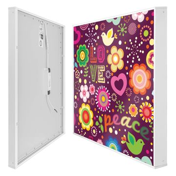 banjado LED Wandleuchte Sie erhalten hier eine stimmungsvolle Lichtquelle bestehend aus dem Set: Smart LED Panel mit Trafo, Motivscheibe (Motiv: Love and Peace) und Rahmen. Der Aufbau ist denkbar einfach, Sie erhalten eine detaillierte Aufbauanleitung. Die komplette Leuchte kann sowohl an der Wand angeschlossen werden als auch als Deckenleuchte. Die Gesamtgröße der Lampe ist 62,5 x 62,5 x 4,5cm (HxBxT). Das Set besteht aus: LED Panel mit Trafo, Rahmen und Motivbild zum Selbstaufbau.