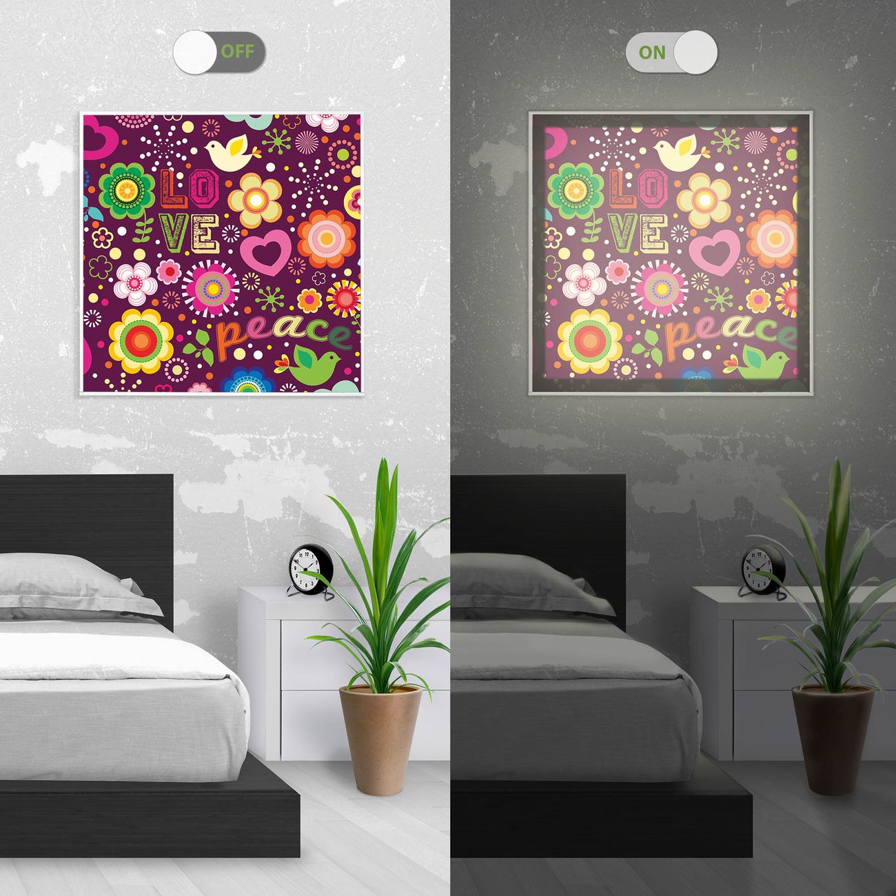 banjado Licht Bild LED Lampe Smart Home Motiv Love and Peace