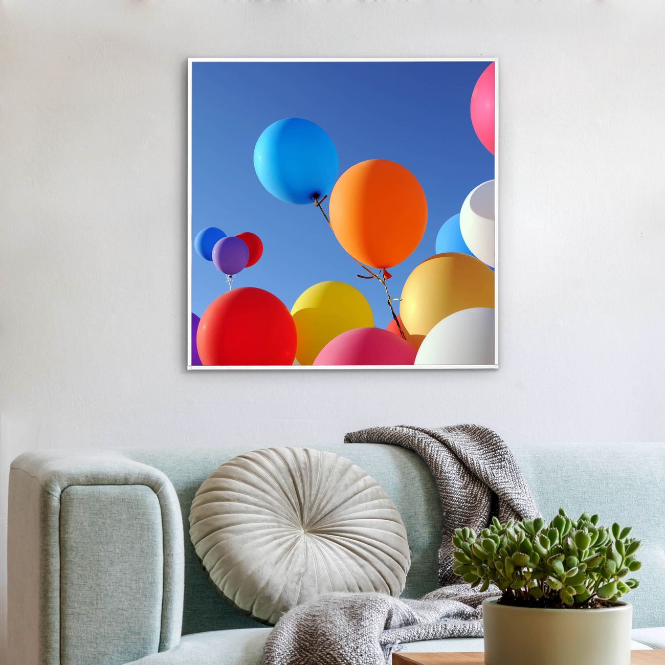 Mit der banjado smarten LED Wandleuchte mit Motiv Luftballons schaffen Sie in Ihren Räumen eine besondere Atmosphäre. Abends spendet die Wandlampe Licht und tagsüber haben Sie ein stimmungsvolles Wandbild. Die Leuchte besteht aus einem zeitlosen weißen Rahmen, in den das smarte WLAN LED Paneel sowie das Bild eingefasst wird. Die Montage ist denkbar einfach, Sie erhalten eine detaillierte Aufbauanleitung sowie Montagematerial. Eine angenehme Lichtquelle erhöht nachweislich das Wohlbefinden. Das Motiv der Leuchte lässt sich leicht wechseln, so können Sie Ihre Wohnräume individuell gestalten. Die Montage ist an der Wand oder an der Decke möglich.