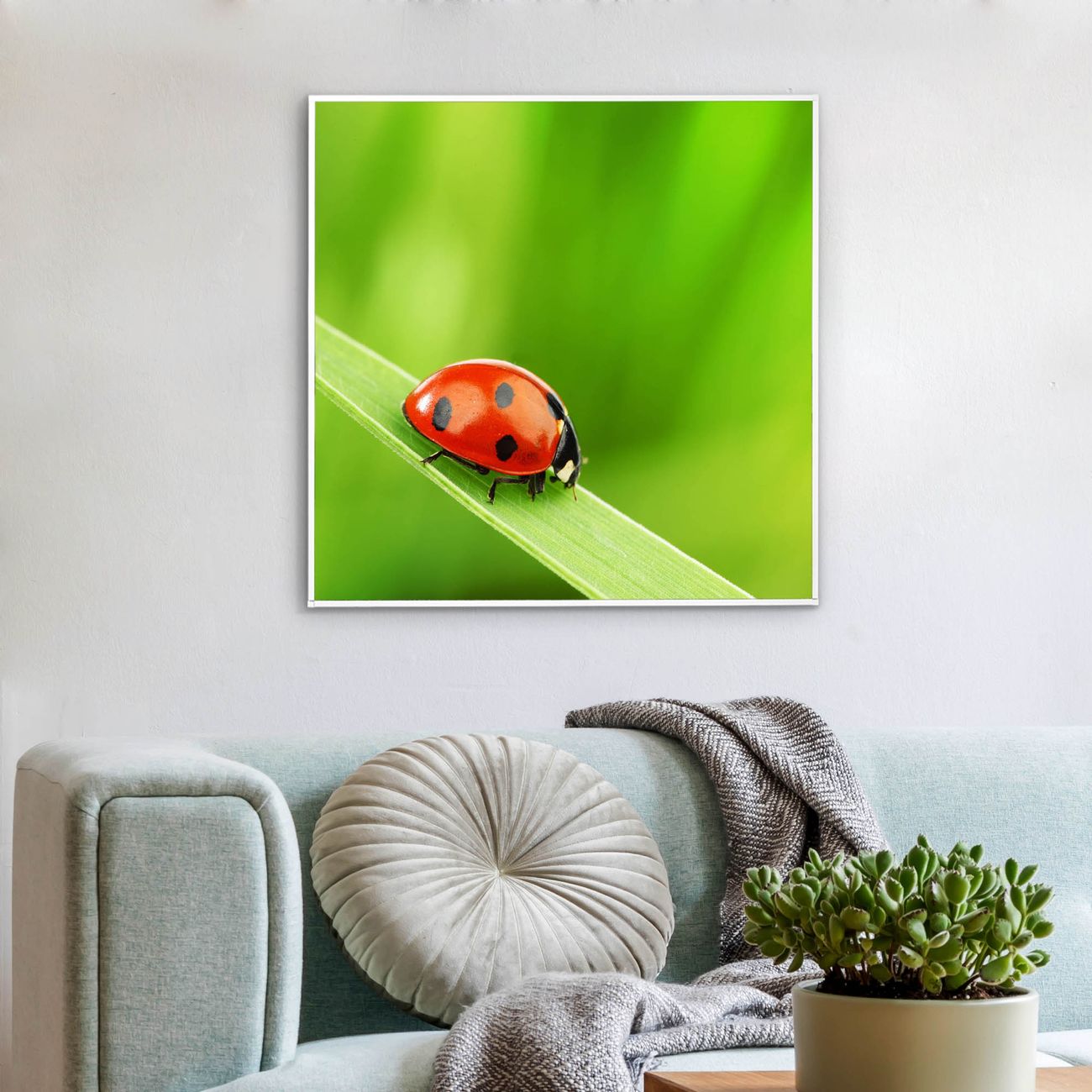 Mit der banjado smarten LED Wandleuchte mit Motiv Marienkäfer schaffen Sie in Ihren Räumen eine besondere Atmosphäre. Abends spendet die Wandlampe Licht und tagsüber haben Sie ein stimmungsvolles Wandbild. Die Leuchte besteht aus einem zeitlosen weißen Rahmen, in den das smarte WLAN LED Paneel sowie das Bild eingefasst wird. Die Montage ist denkbar einfach, Sie erhalten eine detaillierte Aufbauanleitung sowie Montagematerial. Eine angenehme Lichtquelle erhöht nachweislich das Wohlbefinden. Das Motiv der Leuchte lässt sich leicht wechseln, so können Sie Ihre Wohnräume individuell gestalten. Die Montage ist an der Wand oder an der Decke möglich.