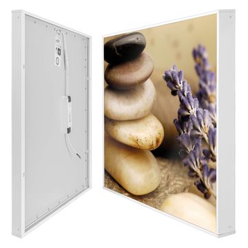 Mit der banjado smarten LED Wandleuchte mit Motiv Meditation schaffen Sie in Ihren Räumen eine besondere Atmosphäre. Abends spendet die Wandlampe Licht und tagsüber haben Sie ein stimmungsvolles Wandbild. Die Leuchte besteht aus einem zeitlosen weißen Rahmen, in den das smarte WLAN LED Paneel sowie das Bild eingefasst wird. Die Montage ist denkbar einfach, Sie erhalten eine detaillierte Aufbauanleitung sowie Montagematerial. Eine angenehme Lichtquelle erhöht nachweislich das Wohlbefinden. Das Motiv der Leuchte lässt sich leicht wechseln, so können Sie Ihre Wohnräume individuell gestalten. Die Montage ist an der Wand oder an der Decke möglich.