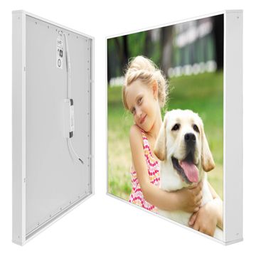 banjado LED Wandleuchte Sie erhalten hier eine stimmungsvolle Lichtquelle bestehend aus dem Set: Smart LED Panel mit Trafo, Motivscheibe (Motiv: mit Ihrem eigenen Motiv) und Rahmen. Der Aufbau ist denkbar einfach, Sie erhalten eine detaillierte Aufbauanleitung. Die komplette Leuchte kann sowohl an der Wand angeschlossen werden als auch als Deckenleuchte. Die Gesamtgröße der Lampe ist 62,5 x 62,5 x 4,5cm (HxBxT). Das Set besteht aus: LED Panel mit Trafo, Rahmen und Motivbild zum Selbstaufbau.
