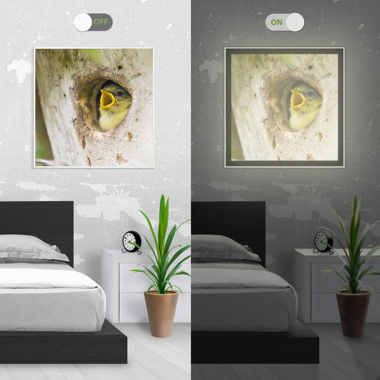 Im eingeschalteten Zustand wirft das Bild einen Schatten wie in der ersten Ansicht zu sehen.
