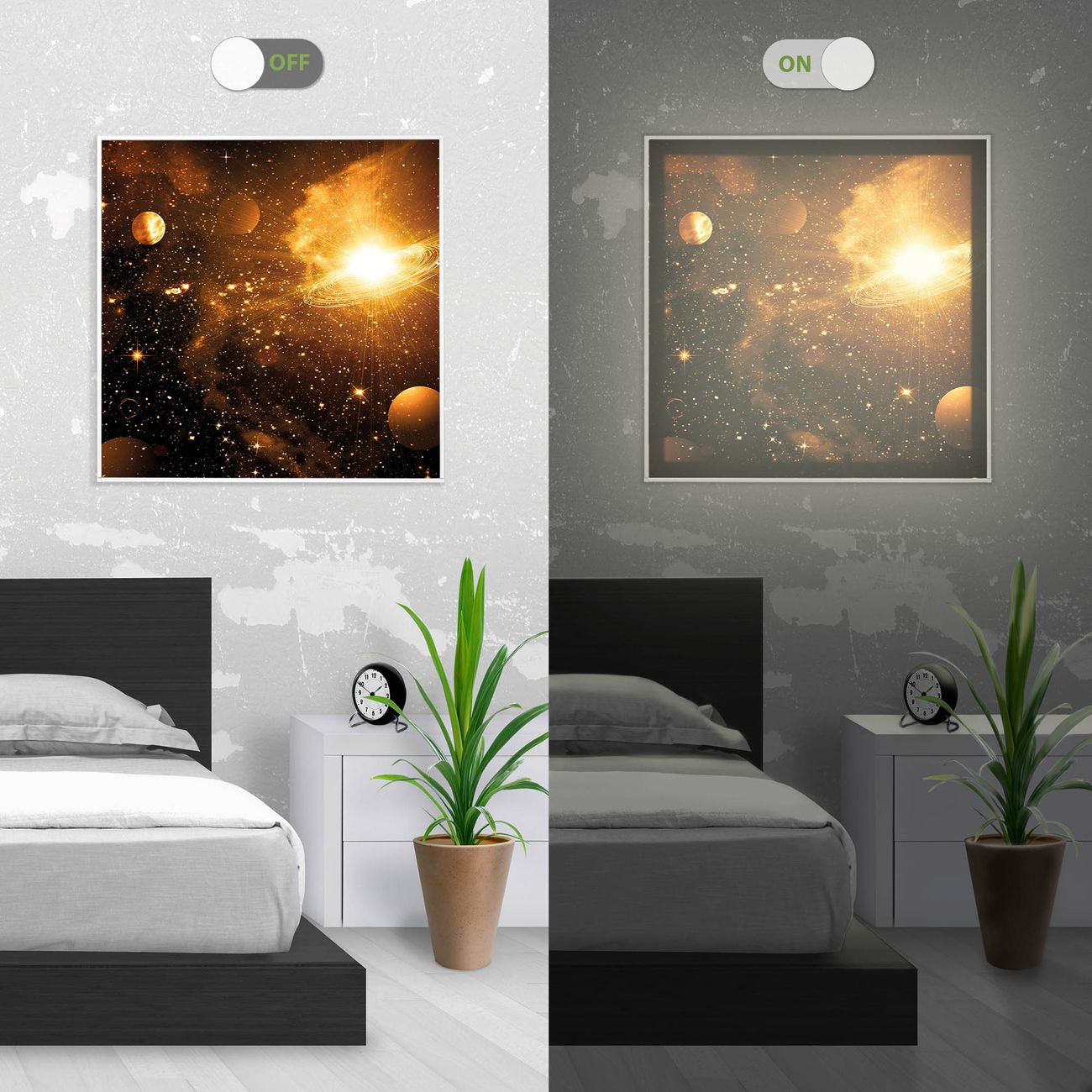 - Aussehen: Tags ein Wandbild, Nachts eine Lampe