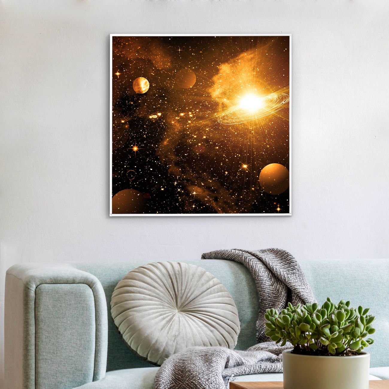Mit der banjado smarten LED Wandleuchte mit Motiv Outer Space schaffen Sie in Ihren Räumen eine besondere Atmosphäre. Abends spendet die Wandlampe Licht und tagsüber haben Sie ein stimmungsvolles Wandbild. Die Leuchte besteht aus einem zeitlosen weißen Rahmen, in den das smarte WLAN LED Paneel sowie das Bild eingefasst wird. Die Montage ist denkbar einfach, Sie erhalten eine detaillierte Aufbauanleitung sowie Montagematerial. Eine angenehme Lichtquelle erhöht nachweislich das Wohlbefinden. Das Motiv der Leuchte lässt sich leicht wechseln, so können Sie Ihre Wohnräume individuell gestalten. Die Montage ist an der Wand oder an der Decke möglich.