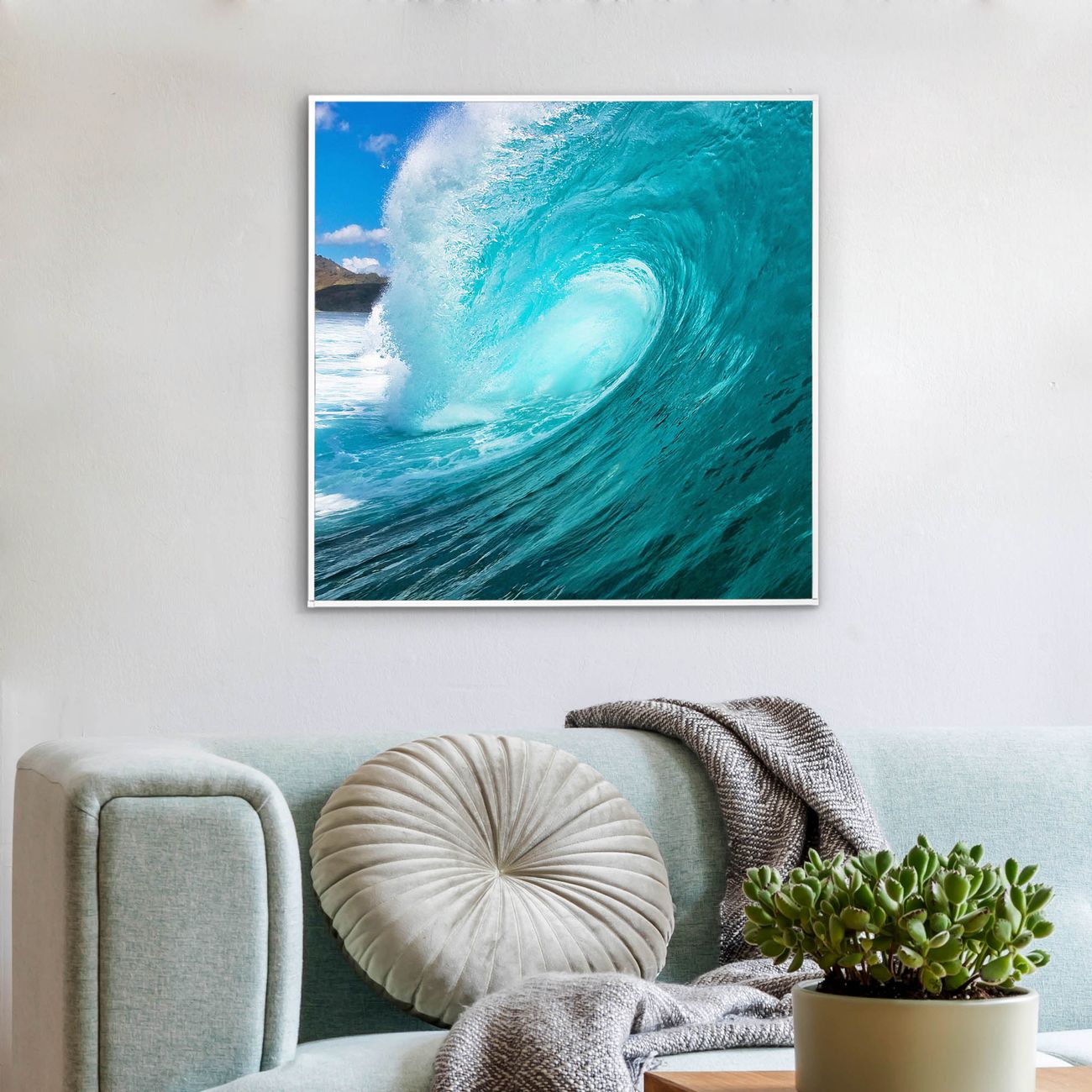 Mit der banjado smarten LED Wandleuchte mit Motiv Perfekte Welle schaffen Sie in Ihren Räumen eine besondere Atmosphäre. Abends spendet die Wandlampe Licht und tagsüber haben Sie ein stimmungsvolles Wandbild. Die Leuchte besteht aus einem zeitlosen weißen Rahmen, in den das smarte WLAN LED Paneel sowie das Bild eingefasst wird. Die Montage ist denkbar einfach, Sie erhalten eine detaillierte Aufbauanleitung sowie Montagematerial. Eine angenehme Lichtquelle erhöht nachweislich das Wohlbefinden. Das Motiv der Leuchte lässt sich leicht wechseln, so können Sie Ihre Wohnräume individuell gestalten. Die Montage ist an der Wand oder an der Decke möglich.
