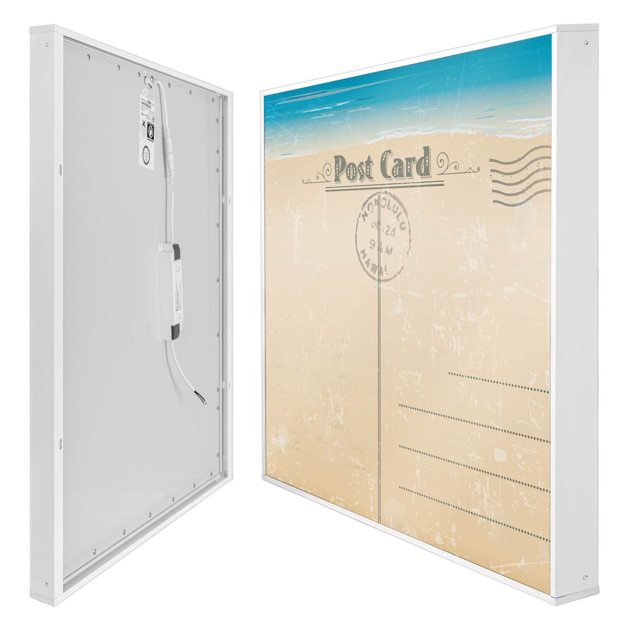 banjado LED Wandleuchte Sie erhalten hier eine stimmungsvolle Lichtquelle bestehend aus dem Set: Smart LED Panel mit Trafo, Motivscheibe (Motiv: Postkarte) und Rahmen. Der Aufbau ist denkbar einfach, Sie erhalten eine detaillierte Aufbauanleitung. Die komplette Leuchte kann sowohl an der Wand angeschlossen werden als auch als Deckenleuchte. Die Gesamtgröße der Lampe ist 62,5 x 62,5 x 4,5cm (HxBxT). Das Set besteht aus: LED Panel mit Trafo, Rahmen und Motivbild zum Selbstaufbau.