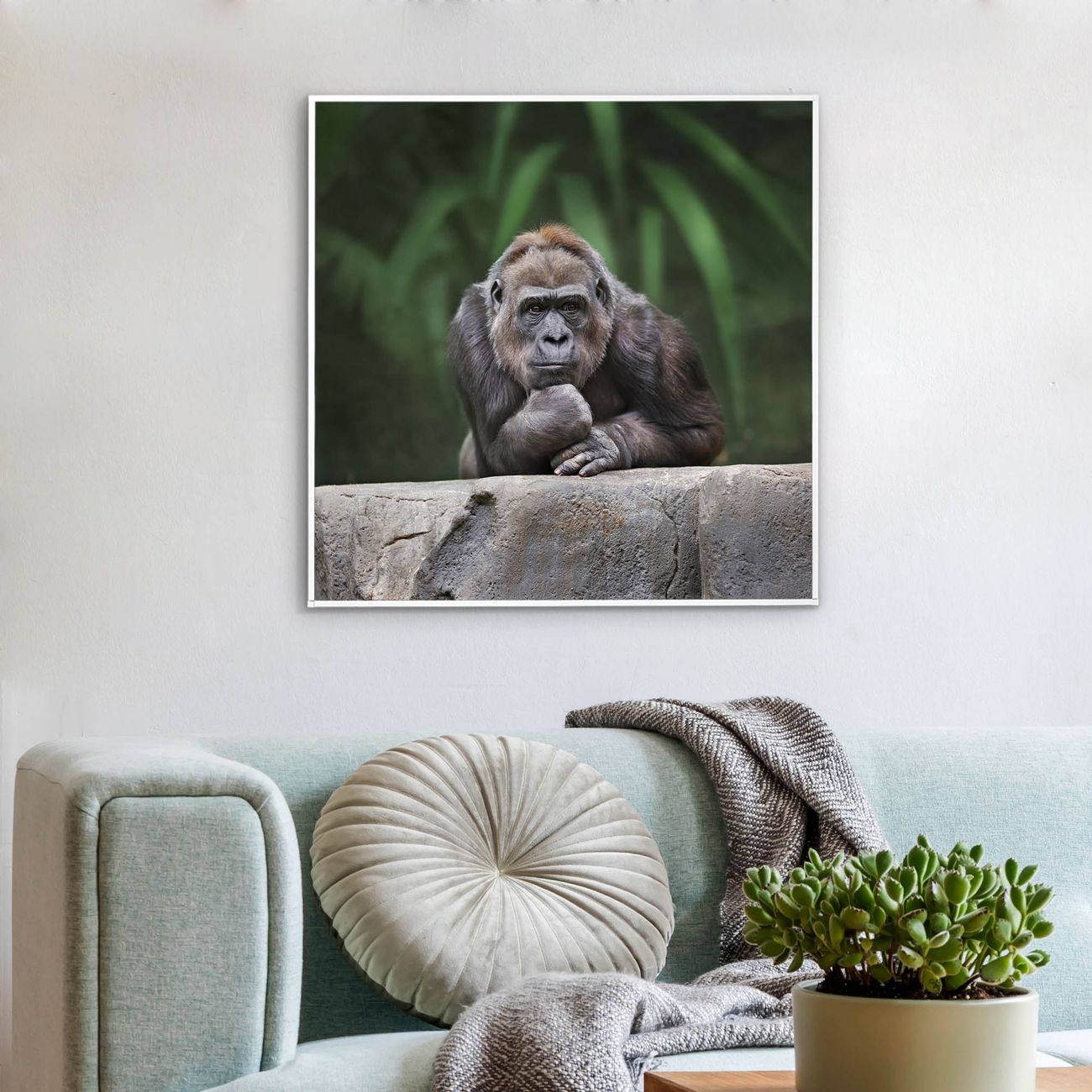 Mit der banjado smarten LED Wandleuchte mit Motiv Gorilla schaffen Sie in Ihren Räumen eine besondere Atmosphäre. Abends spendet die Wandlampe Licht und tagsüber haben Sie ein stimmungsvolles Wandbild. Die Leuchte besteht aus einem zeitlosen weißen Rahmen, in den das smarte WLAN LED Paneel sowie das Bild eingefasst wird. Die Montage ist denkbar einfach, Sie erhalten eine detaillierte Aufbauanleitung sowie Montagematerial. Eine angenehme Lichtquelle erhöht nachweislich das Wohlbefinden. Das Motiv der Leuchte lässt sich leicht wechseln, so können Sie Ihre Wohnräume individuell gestalten. Die Montage ist an der Wand oder an der Decke möglich.