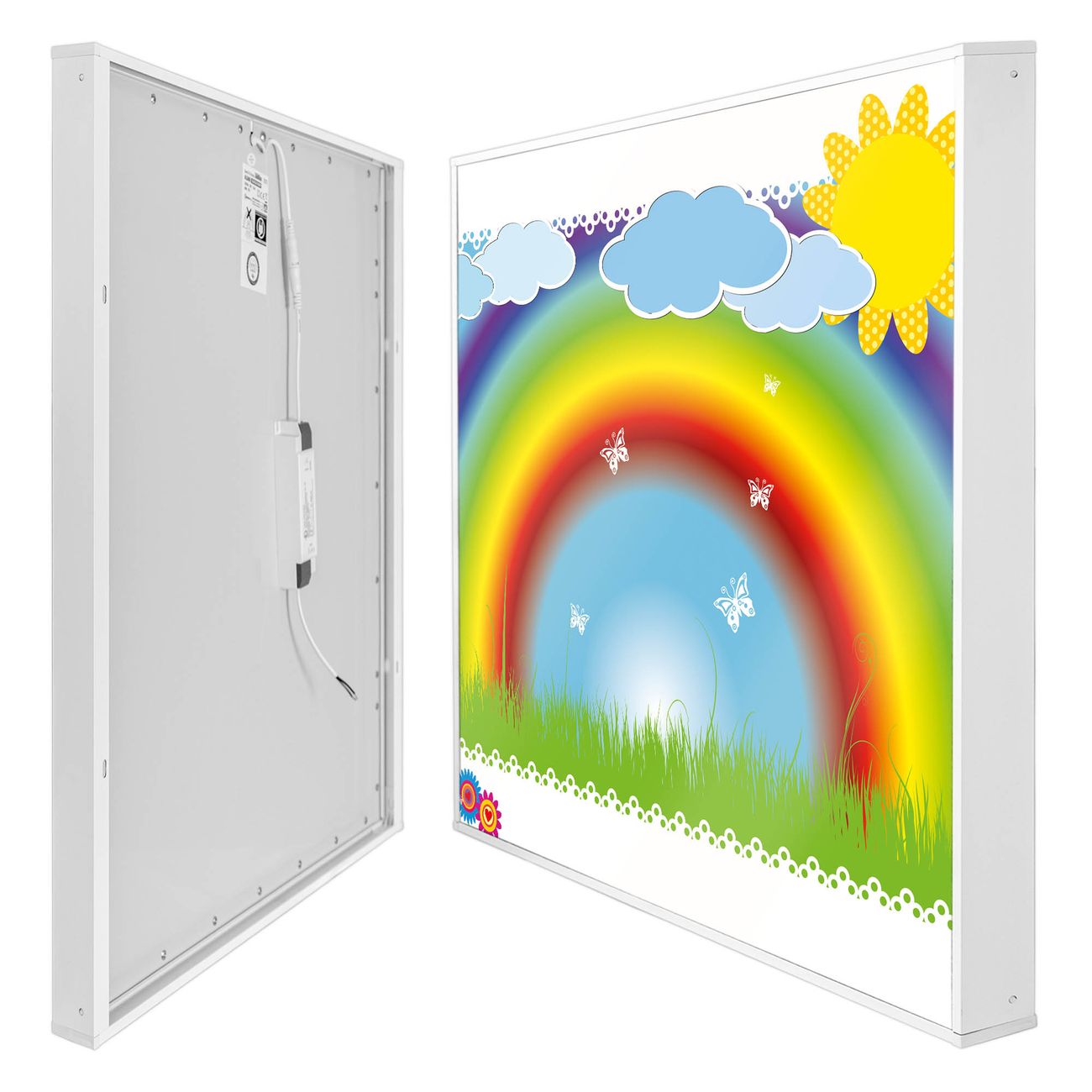 banjado LED Wandleuchte Sie erhalten hier eine stimmungsvolle Lichtquelle bestehend aus dem Set: Smart LED Panel mit Trafo, Motivscheibe (Motiv: Regenbogen) und Rahmen. Der Aufbau ist denkbar einfach, Sie erhalten eine detaillierte Aufbauanleitung. Die komplette Leuchte kann sowohl an der Wand angeschlossen werden als auch als Deckenleuchte. Die Gesamtgröße der Lampe ist 62,5 x 62,5 x 4,5cm (HxBxT). Das Set besteht aus: LED Panel mit Trafo, Rahmen und Motivbild zum Selbstaufbau.