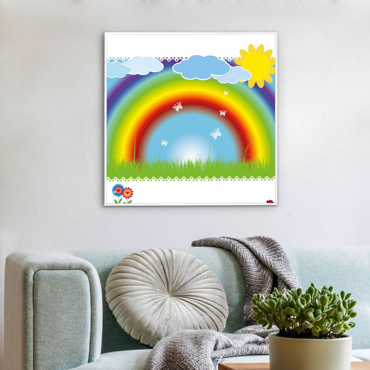 Mit der banjado smarten LED Wandleuchte mit Motiv Regenbogen schaffen Sie in Ihren Räumen eine besondere Atmosphäre. Abends spendet die Wandlampe Licht und tagsüber haben Sie ein stimmungsvolles Wandbild. Die Leuchte besteht aus einem zeitlosen weißen Rahmen, in den das smarte WLAN LED Paneel sowie das Bild eingefasst wird. Die Montage ist denkbar einfach, Sie erhalten eine detaillierte Aufbauanleitung sowie Montagematerial. Eine angenehme Lichtquelle erhöht nachweislich das Wohlbefinden. Das Motiv der Leuchte lässt sich leicht wechseln, so können Sie Ihre Wohnräume individuell gestalten. Die Montage ist an der Wand oder an der Decke möglich.