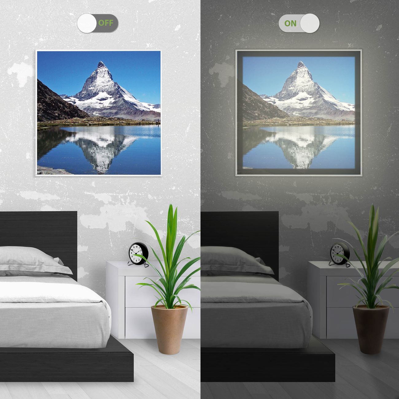 Im eingeschalteten Zustand wirft das Bild einen Schatten wie in der ersten Ansicht zu sehen.