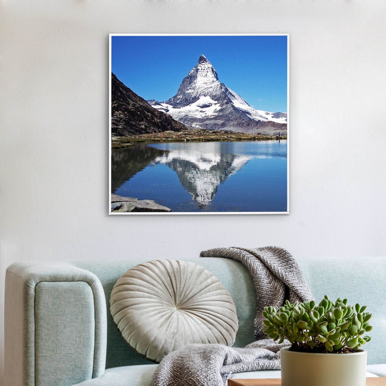 banjado LED Wandleuchte Sie erhalten hier eine stimmungsvolle Lichtquelle bestehend aus dem Set: Smart LED Panel mit Trafo, Motivscheibe (Motiv: Matterhorn) und Rahmen. Der Aufbau ist denkbar einfach, Sie erhalten eine detaillierte Aufbauanleitung. Die komplette Leuchte kann sowohl an der Wand angeschlossen werden als auch als Deckenleuchte. Die Gesamtgröße der Lampe ist 62,5 x 62,5 x 4,5cm (HxBxT). Das Set besteht aus: LED Panel mit Trafo, Rahmen und Motivbild zum Selbstaufbau.
