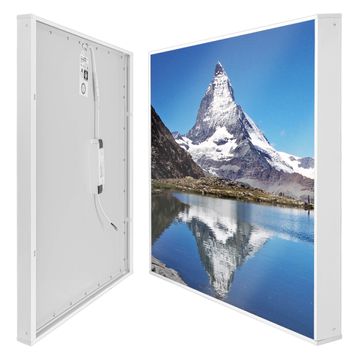 Mit der banjado smarten LED Wandleuchte mit Motiv Matterhorn schaffen Sie in Ihren Räumen eine besondere Atmosphäre. Abends spendet die Wandlampe Licht und tagsüber haben Sie ein stimmungsvolles Wandbild. Die Leuchte besteht aus einem zeitlosen weißen Rahmen, in den das smarte WLAN LED Paneel sowie das Bild eingefasst wird. Die Montage ist denkbar einfach, Sie erhalten eine detaillierte Aufbauanleitung sowie Montagematerial. Eine angenehme Lichtquelle erhöht nachweislich das Wohlbefinden. Das Motiv der Leuchte lässt sich leicht wechseln, so können Sie Ihre Wohnräume individuell gestalten. Die Montage ist an der Wand oder an der Decke möglich.