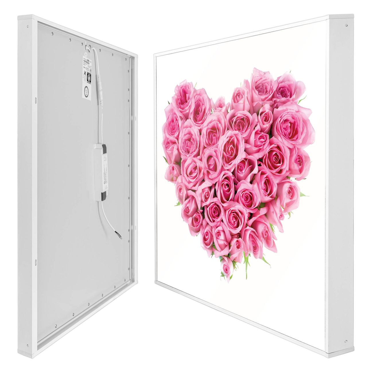 banjado LED Wandleuchte Sie erhalten hier eine stimmungsvolle Lichtquelle bestehend aus dem Set: Smart LED Panel mit Trafo, Motivscheibe (Motiv: Rosenherz) und Rahmen. Der Aufbau ist denkbar einfach, Sie erhalten eine detaillierte Aufbauanleitung. Die komplette Leuchte kann sowohl an der Wand angeschlossen werden als auch als Deckenleuchte. Die Gesamtgröße der Lampe ist 62,5 x 62,5 x 4,5cm (HxBxT). Das Set besteht aus: LED Panel mit Trafo, Rahmen und Motivbild zum Selbstaufbau.