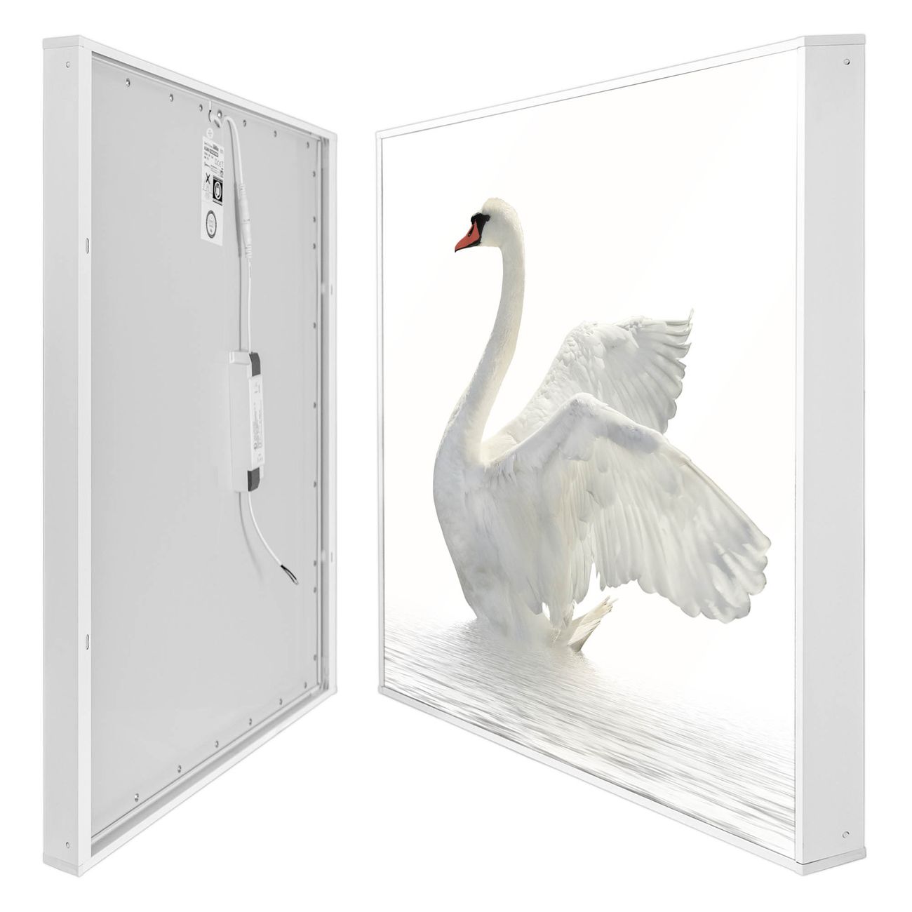 banjado LED Wandleuchte Sie erhalten hier eine stimmungsvolle Lichtquelle bestehend aus dem Set: Smart LED Panel mit Trafo, Motivscheibe (Motiv: Schwan) und Rahmen. Der Aufbau ist denkbar einfach, Sie erhalten eine detaillierte Aufbauanleitung. Die komplette Leuchte kann sowohl an der Wand angeschlossen werden als auch als Deckenleuchte. Die Gesamtgröße der Lampe ist 62,5 x 62,5 x 4,5cm (HxBxT). Das Set besteht aus: LED Panel mit Trafo, Rahmen und Motivbild zum Selbstaufbau.