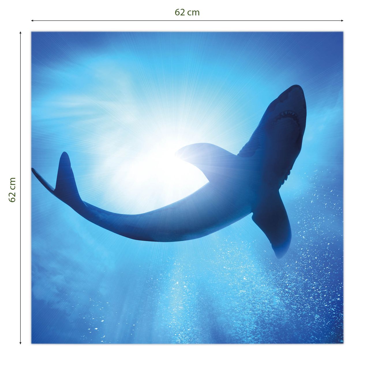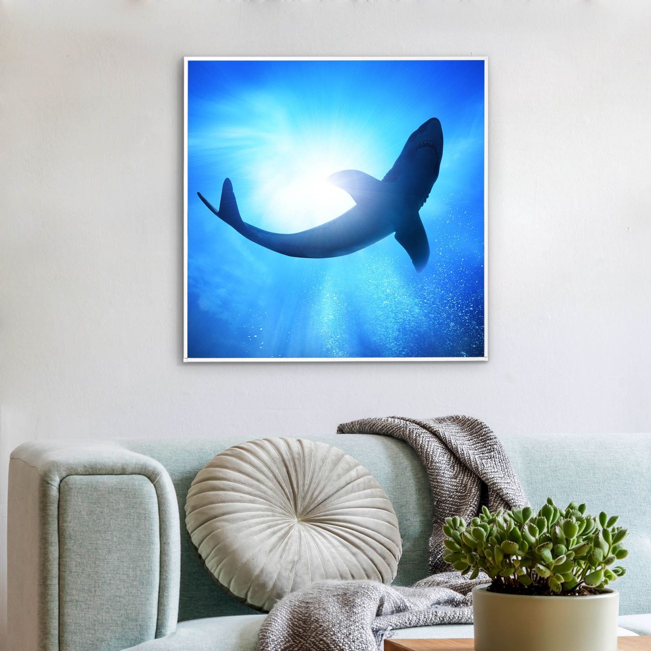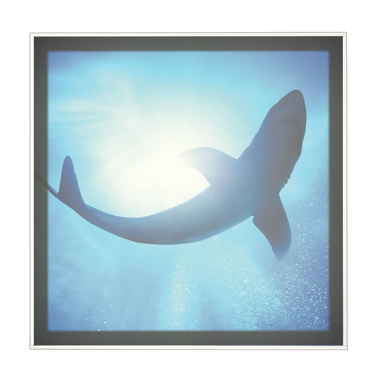 banjado LED Wandleuchte Sie erhalten hier eine stimmungsvolle Lichtquelle bestehend aus dem Set: Smart LED Panel mit Trafo, Motivscheibe (Motiv: Hai) und Rahmen. Der Aufbau ist denkbar einfach, Sie erhalten eine detaillierte Aufbauanleitung. Die komplette Leuchte kann sowohl an der Wand angeschlossen werden als auch als Deckenleuchte. Die Gesamtgröße der Lampe ist 62,5 x 62,5 x 4,5cm (HxBxT). Das Set besteht aus: LED Panel mit Trafo, Rahmen und Motivbild zum Selbstaufbau.