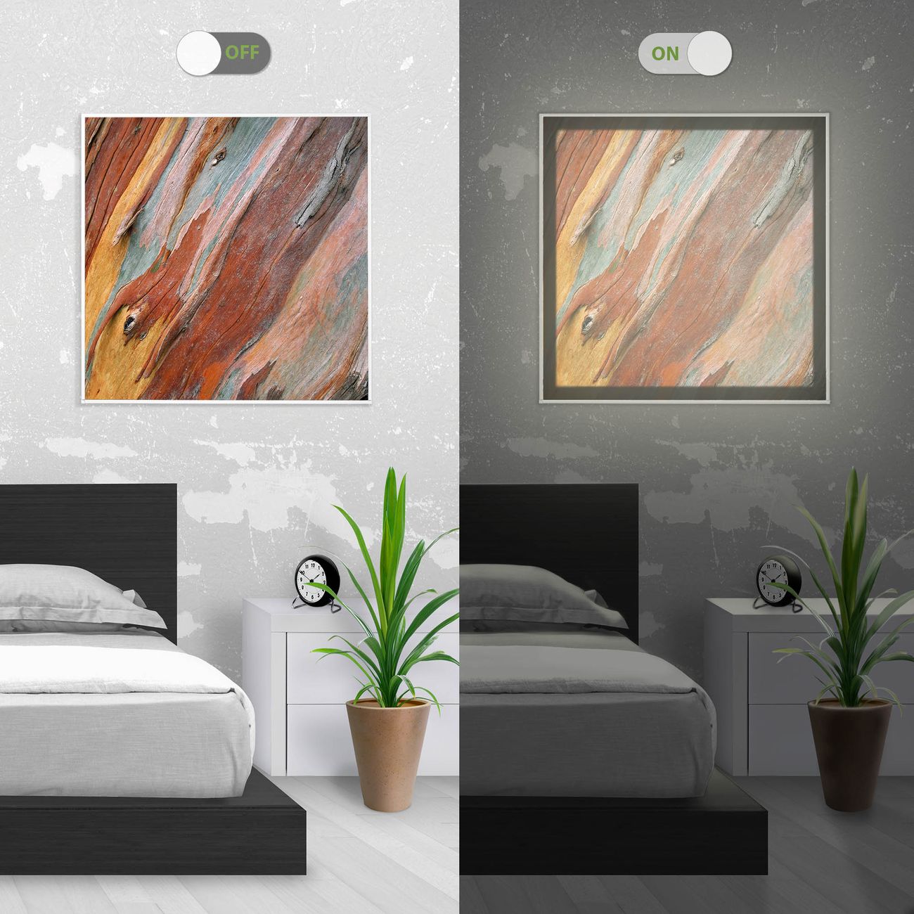 - Aussehen: Tags ein Wandbild, Nachts eine Lampe