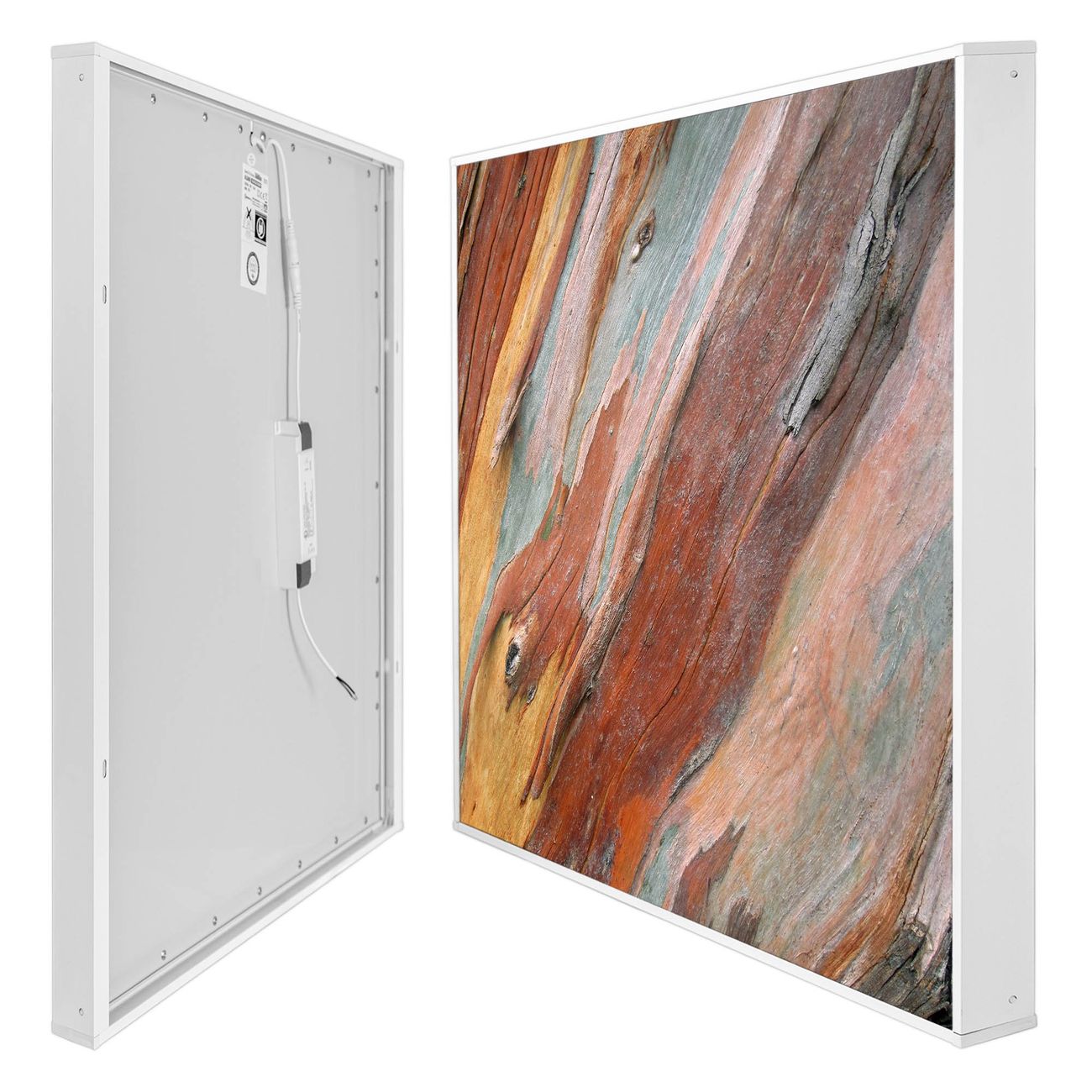 Mit der banjado smarten LED Wandleuchte mit Motiv Coloured Wood schaffen Sie in Ihren Räumen eine besondere Atmosphäre. Abends spendet die Wandlampe Licht und tagsüber haben Sie ein stimmungsvolles Wandbild. Die Leuchte besteht aus einem zeitlosen weißen Rahmen, in den das smarte WLAN LED Paneel sowie das Bild eingefasst wird. Die Montage ist denkbar einfach, Sie erhalten eine detaillierte Aufbauanleitung sowie Montagematerial. Eine angenehme Lichtquelle erhöht nachweislich das Wohlbefinden. Das Motiv der Leuchte lässt sich leicht wechseln, so können Sie Ihre Wohnräume individuell gestalten. Die Montage ist an der Wand oder an der Decke möglich.